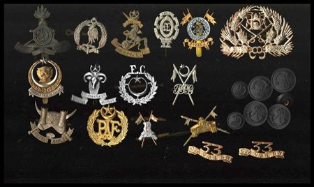 PAKISTAN<br>Lotto di 16 distintivi regimentali e bottoni