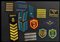 Lotto di 6 coppie di spalline, 8 spalline singole, mostrine e scudetti