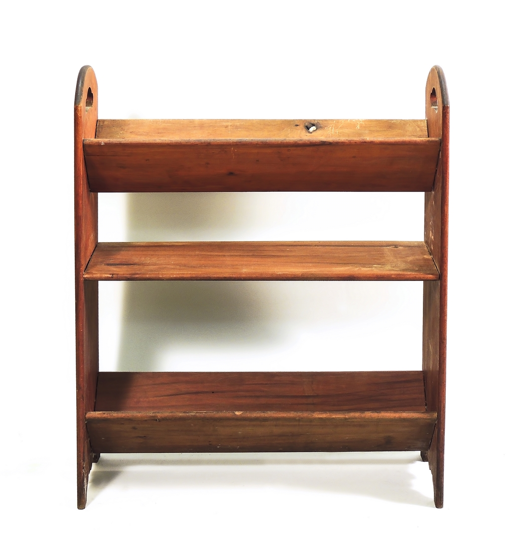 COPPIA DI ÉTAGÈRE BASSE DA LETTURA IN NOCE prima metà del XX secolo formate da due scaffali portalibri angolari ed una mensola, prese laterali h cm 75x60x22