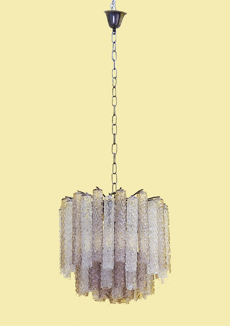 Lotto 1411 | LAMPADARIO IN VETRO SOFFIATO Murano, Anni Settanta realizzato con cilindri in...