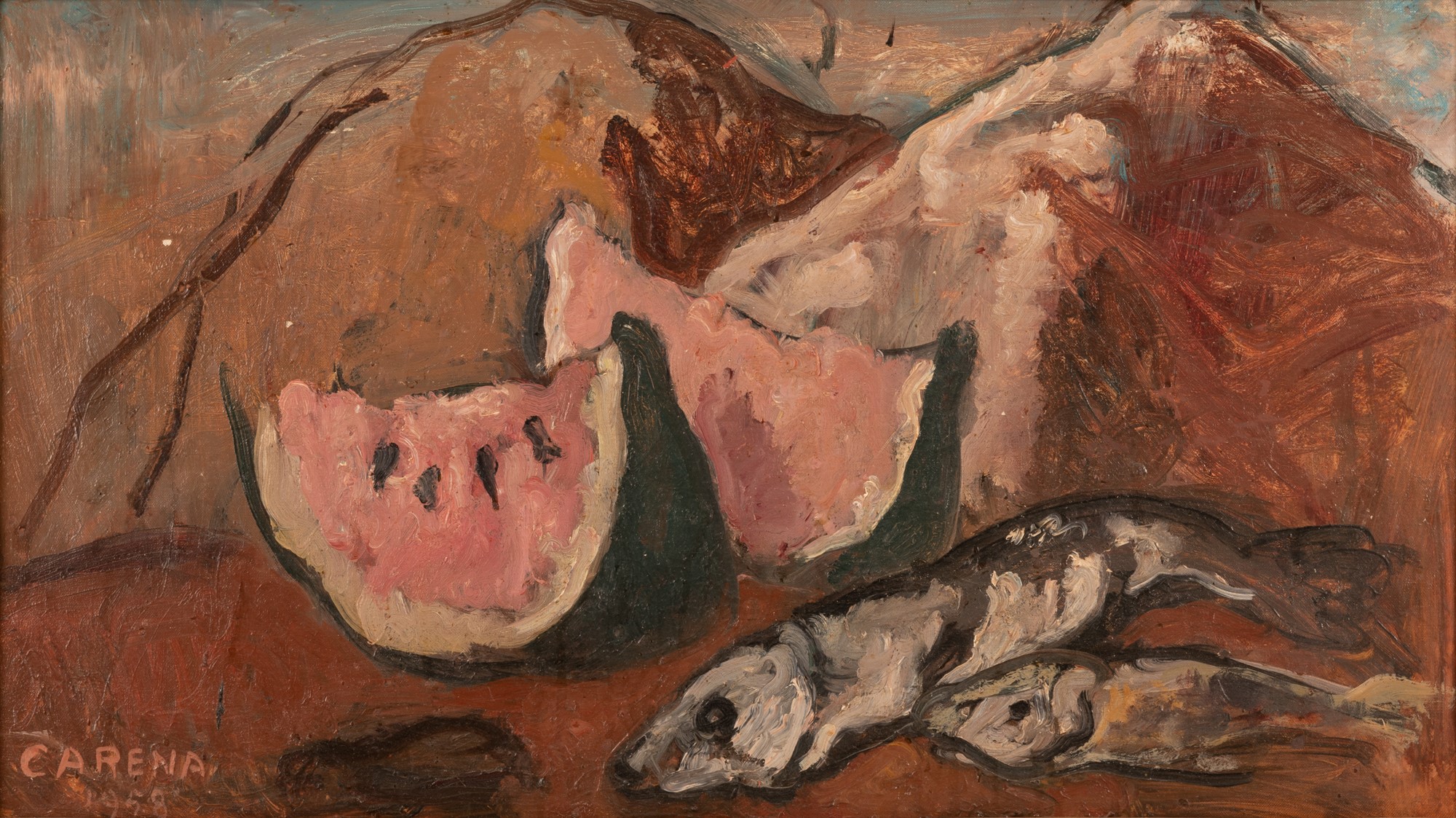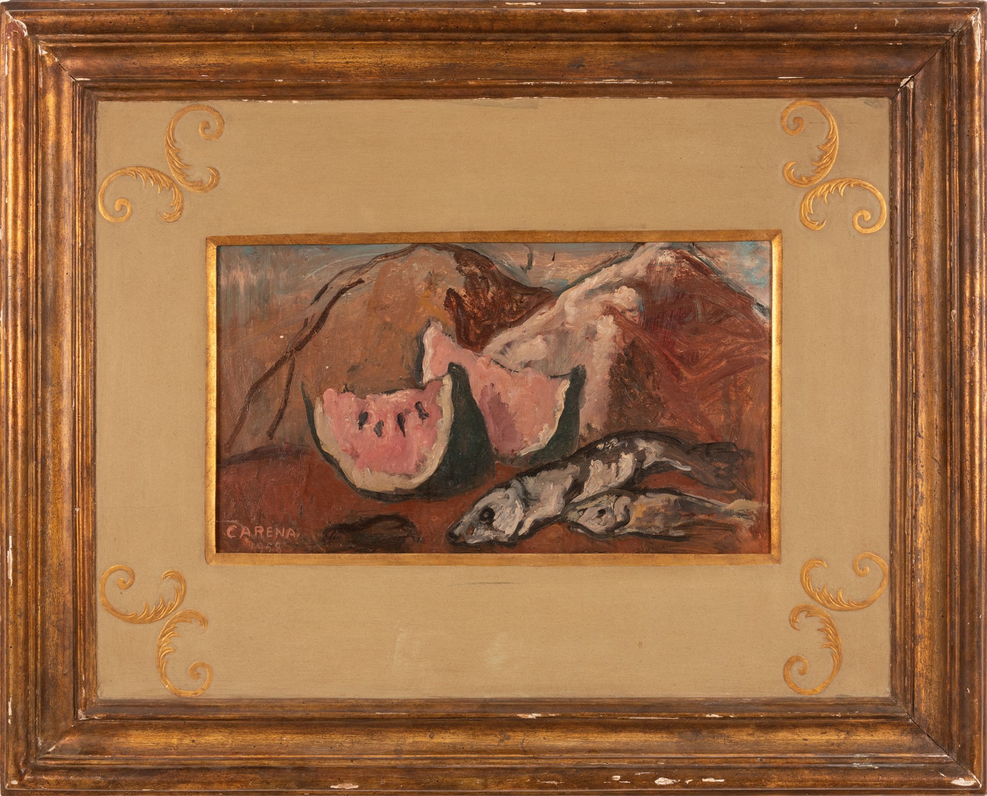 Lotto 163 | Natura morta con cocomero e pesci