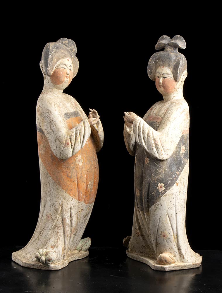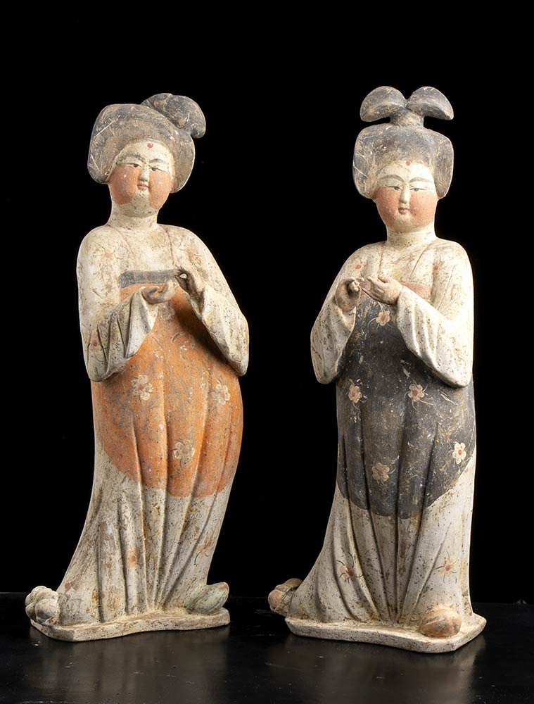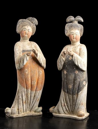COPPIA DI FIGURE FEMMINILI FAT LADIES IN TERRACOTTA DIPINTA