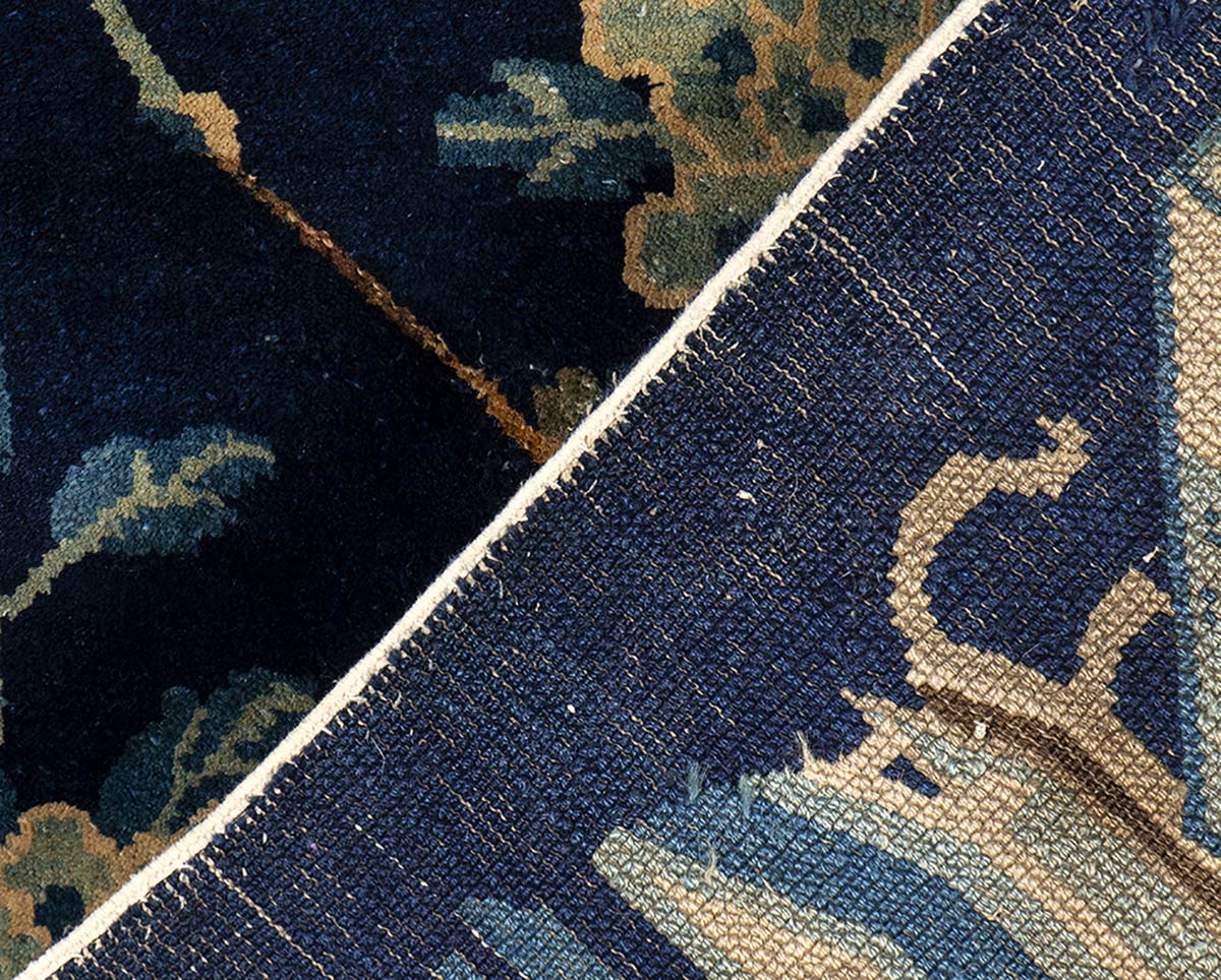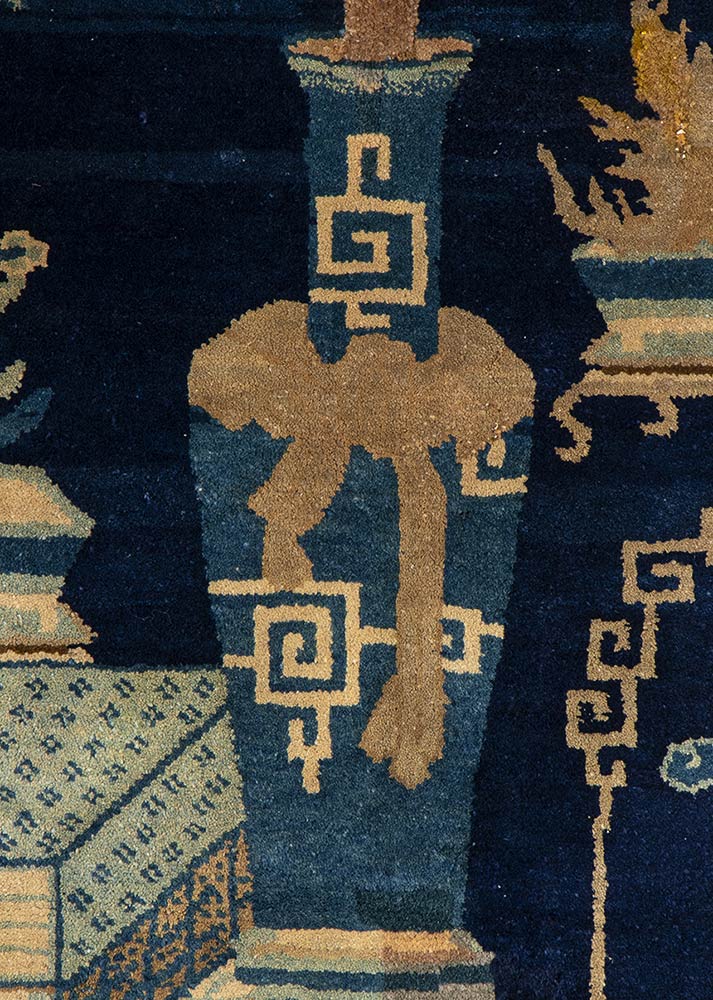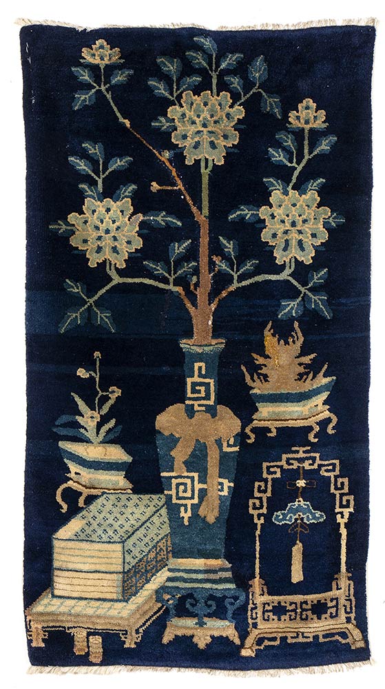 TAPPETO A FONDO BLU CON OGGETTI E FIORI