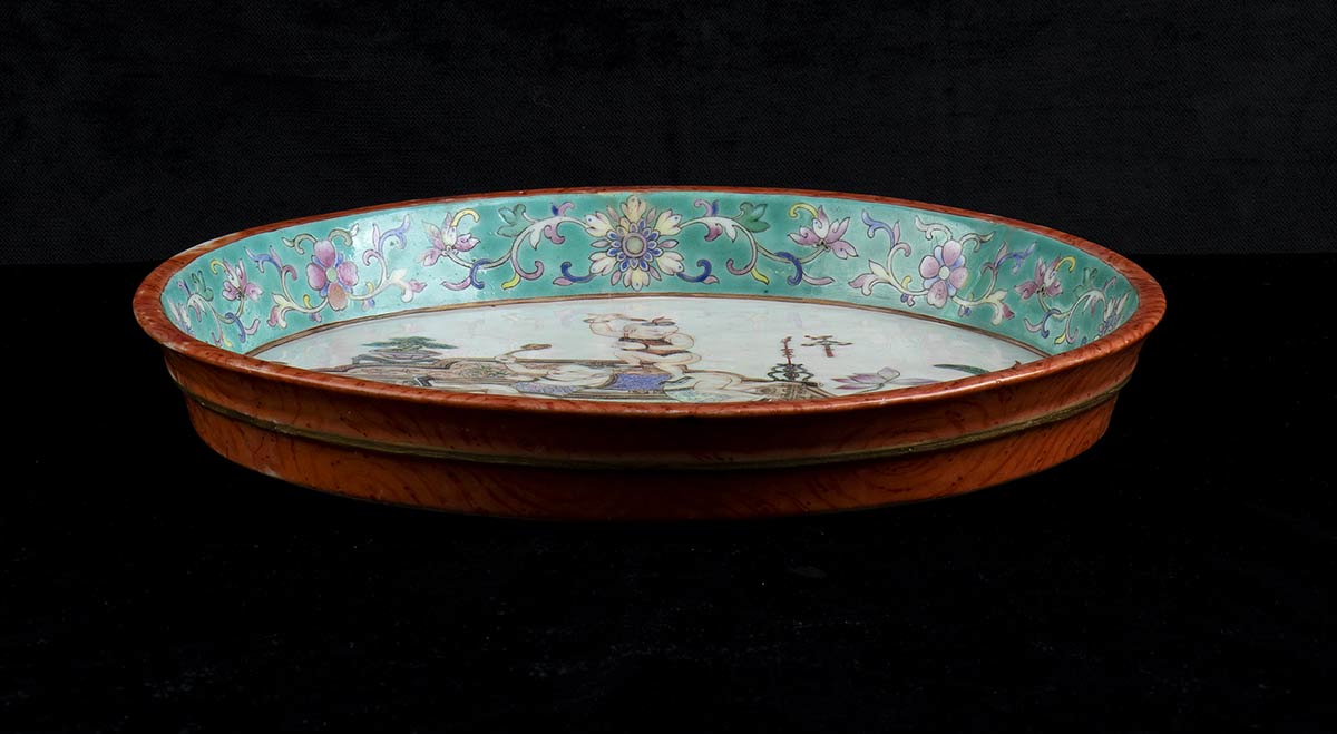 VASSOIO CIRCOLARE IN PORCELLANA CON DECORO A SMALTI POLICROMI