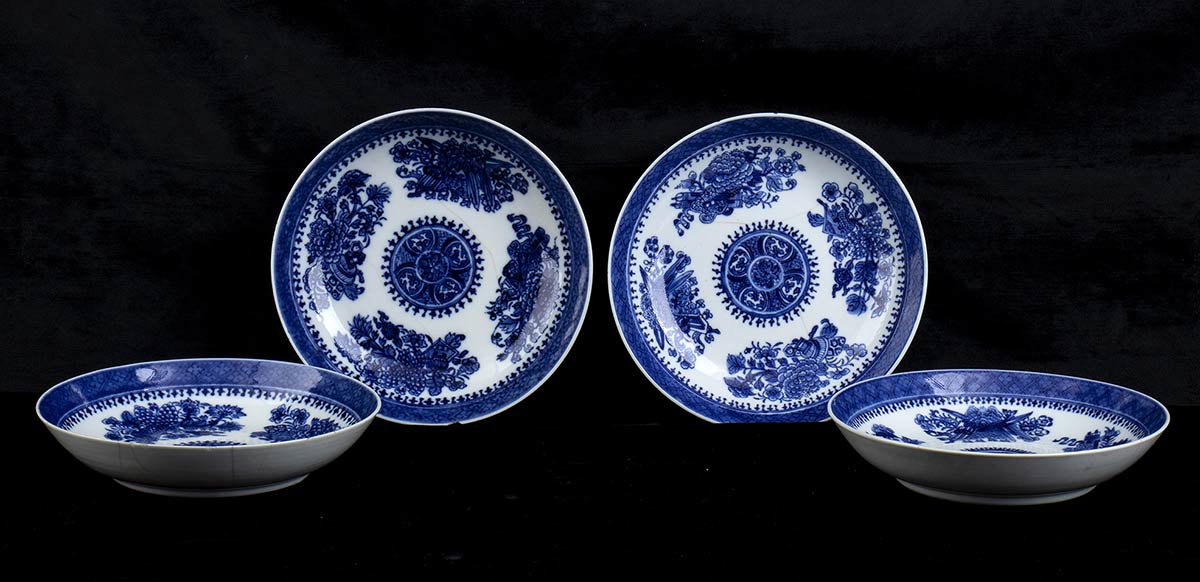 QUATTRO PIATTINI IN PORCELLANA ‘BIANCO E BLU’