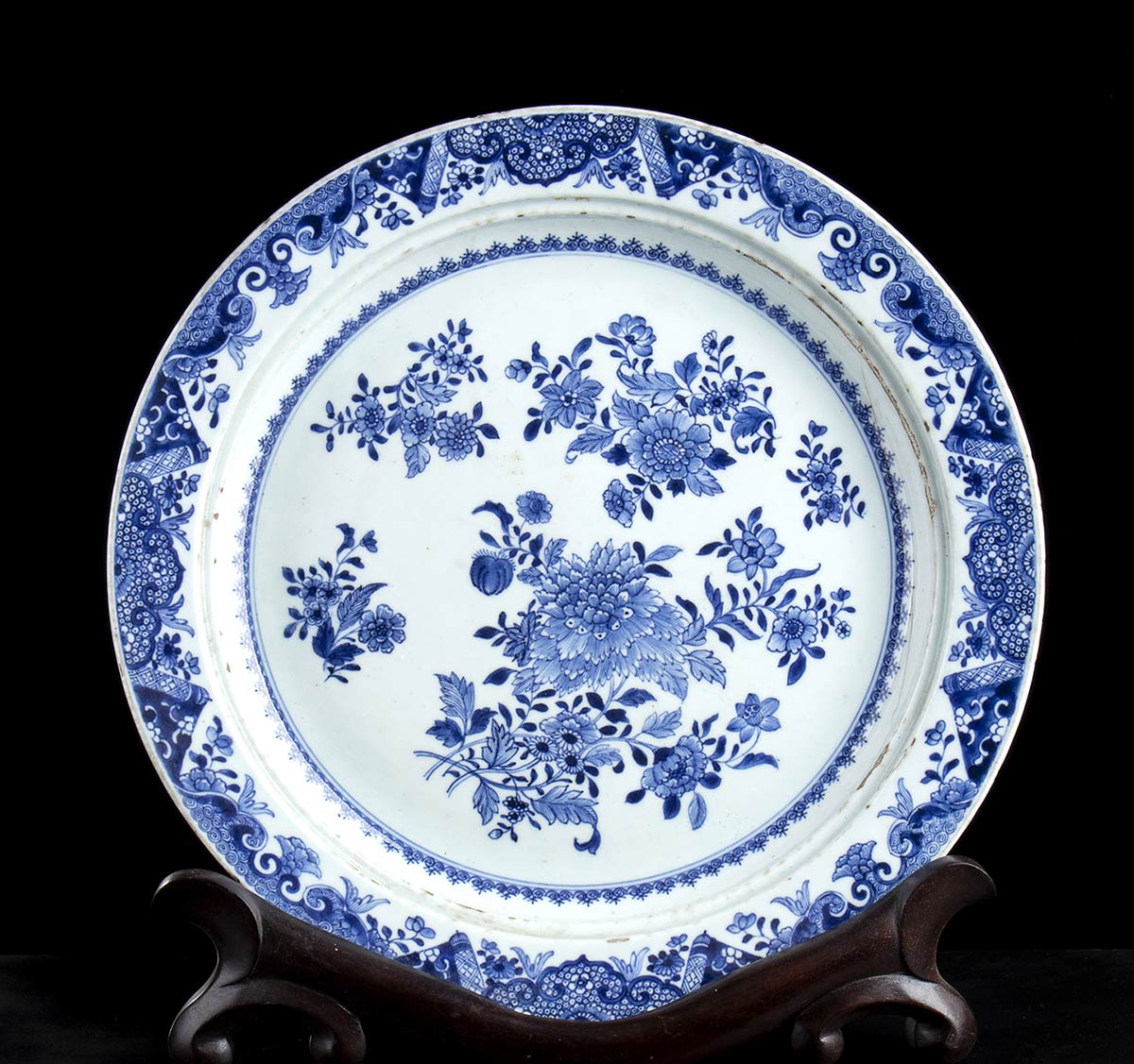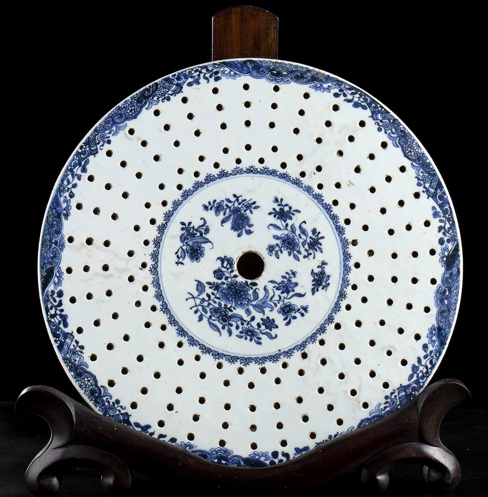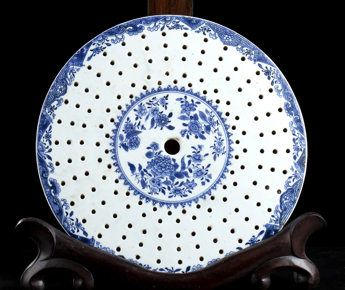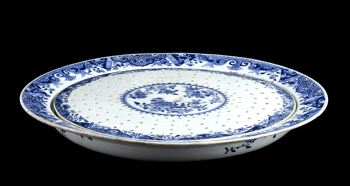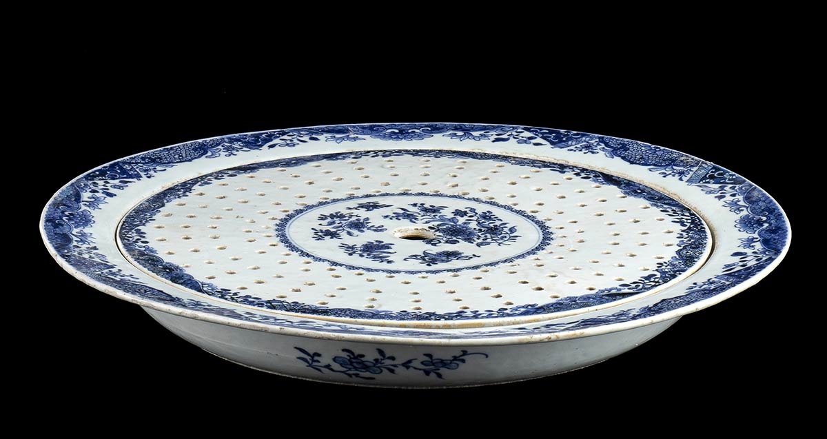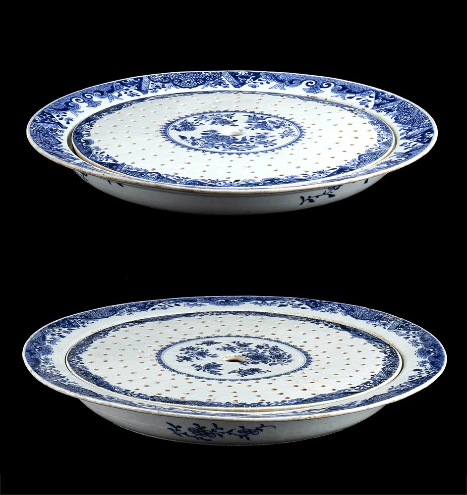 DUE GRANDI SCOLATOI CON RELATIVI PIATTI IN PORCELLANA ‘BIANCO E BLU’