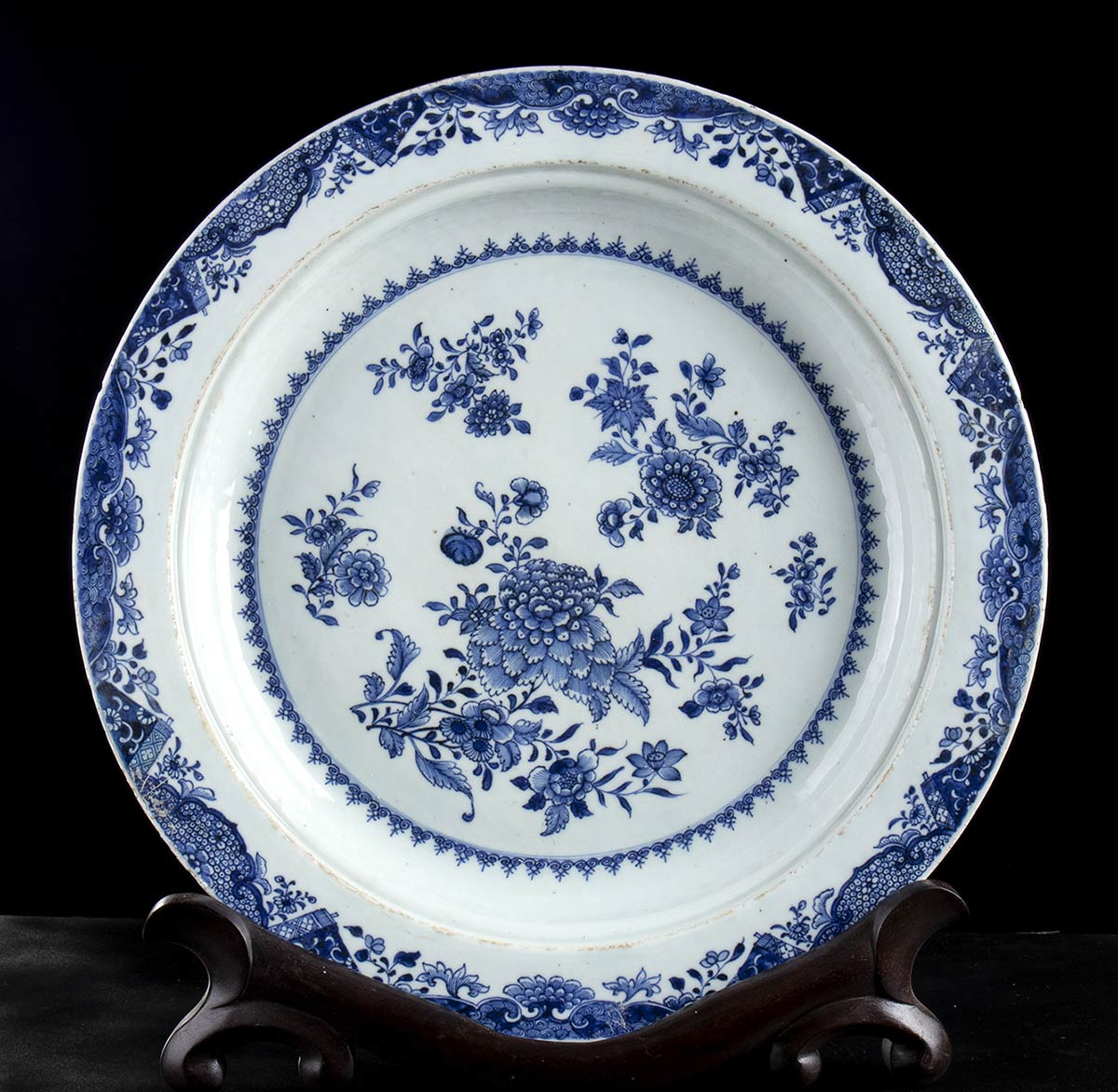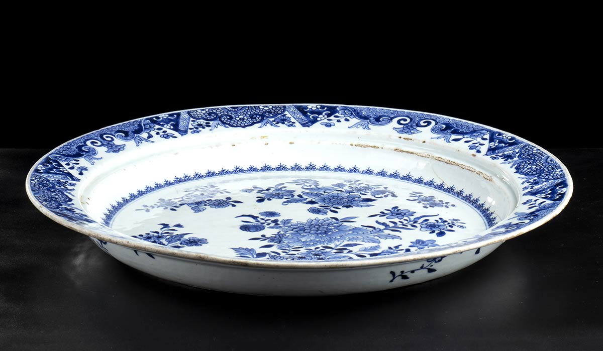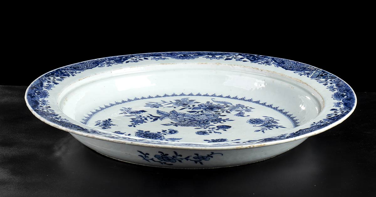 Gli oggetti decorati con motivi floreali e tappeti geometrici in blu di cobalto steso al di sotto dell’invetriata trasparente.