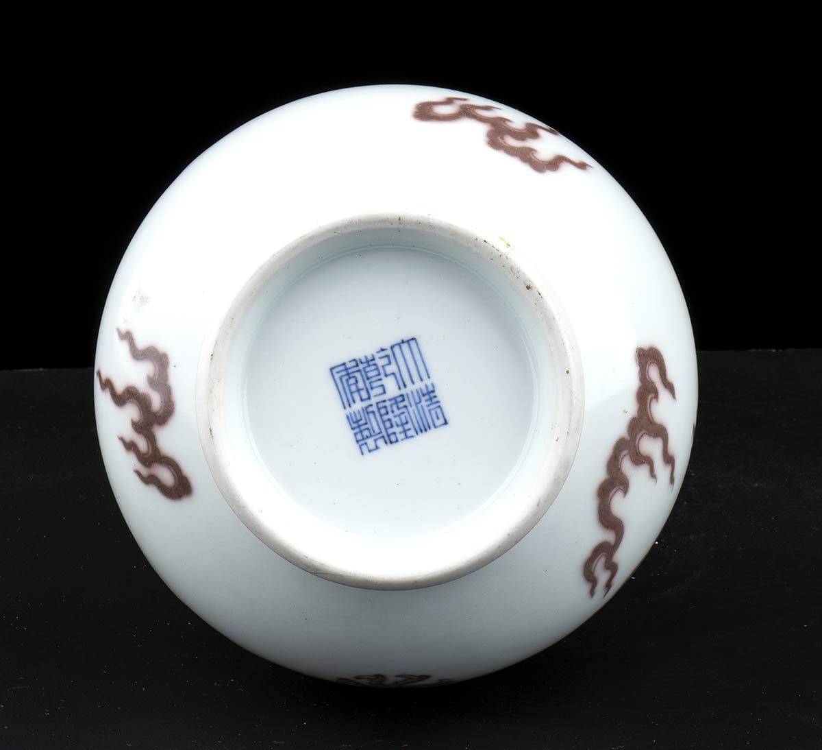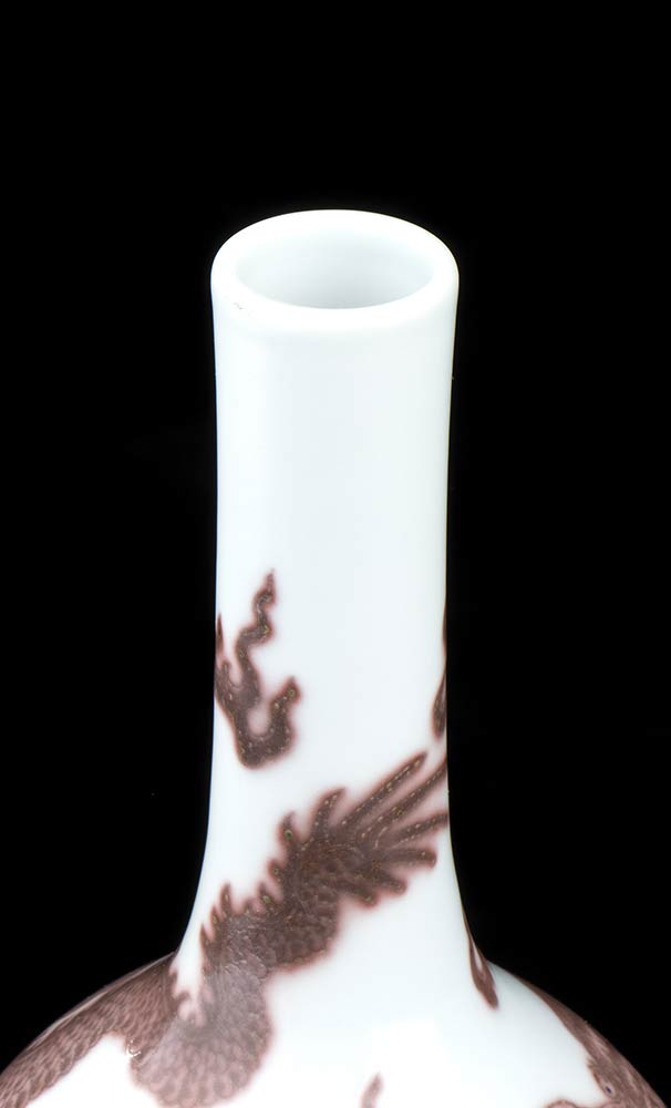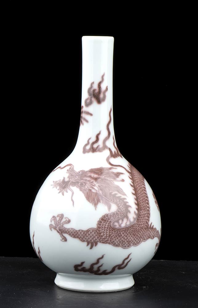 VASO A BOTTIGLIA IN PORCELLANA CON DECORO IN ROSSO DI RAME