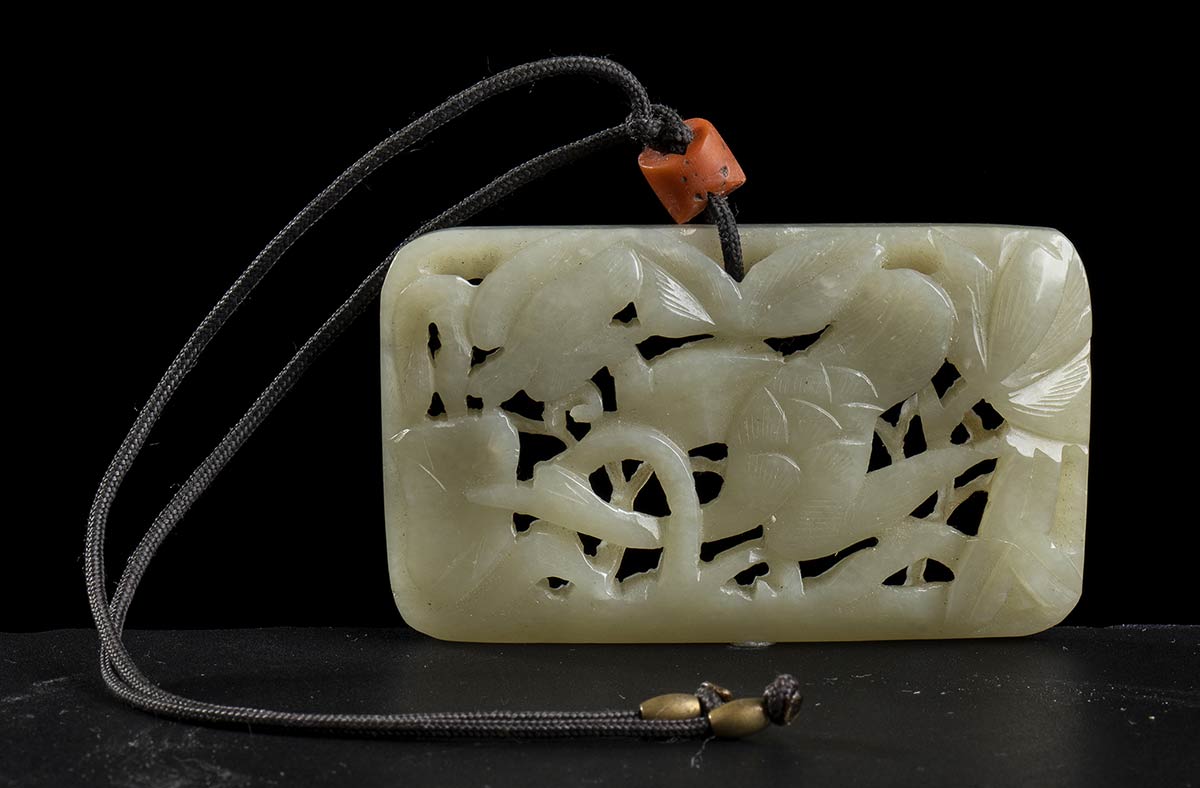 Lotto 90 | PLACCHETTA IN GIADA CÉLADON CON UCCELLO