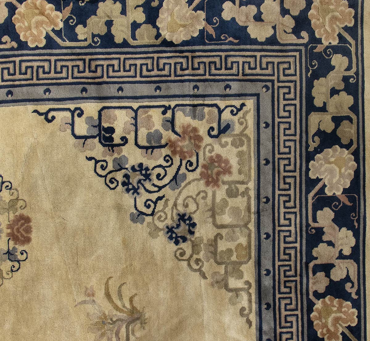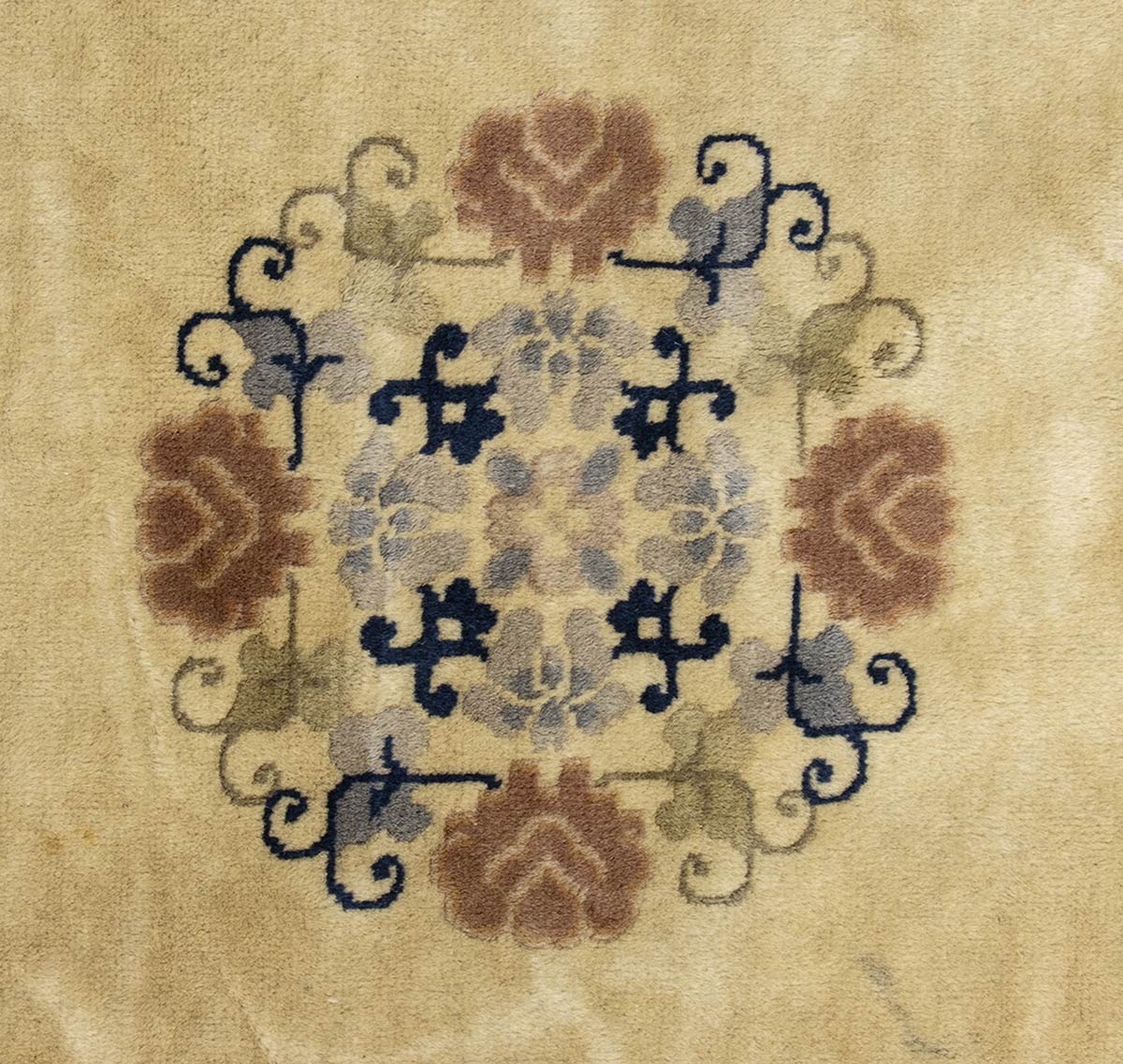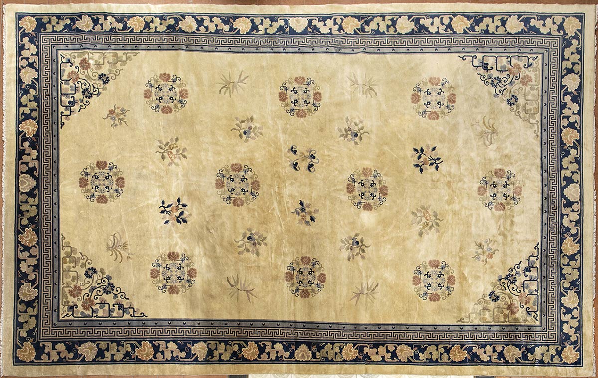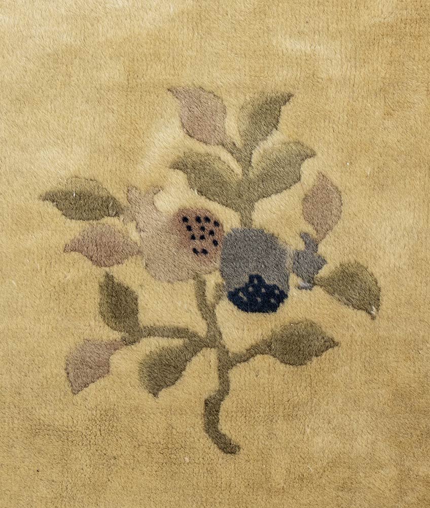 GRANDE E RAFFINATO TAPPETO A FONDO OCRA E DECORO FLOREALE POLICROMO