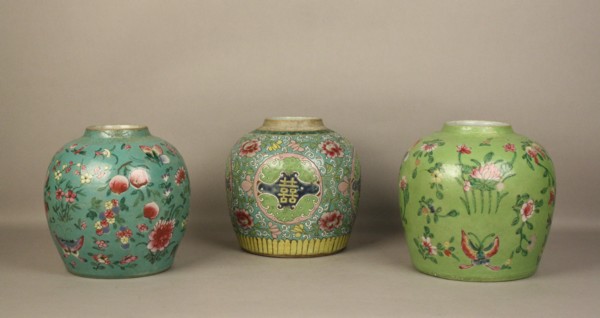 Lotto composto da tre vasi dipinti con motivi floreali. Cina. XIX secolo....