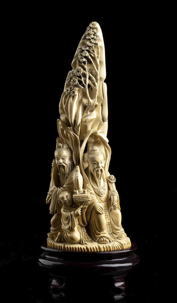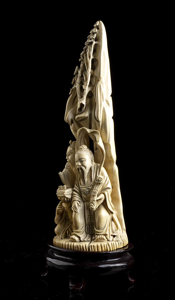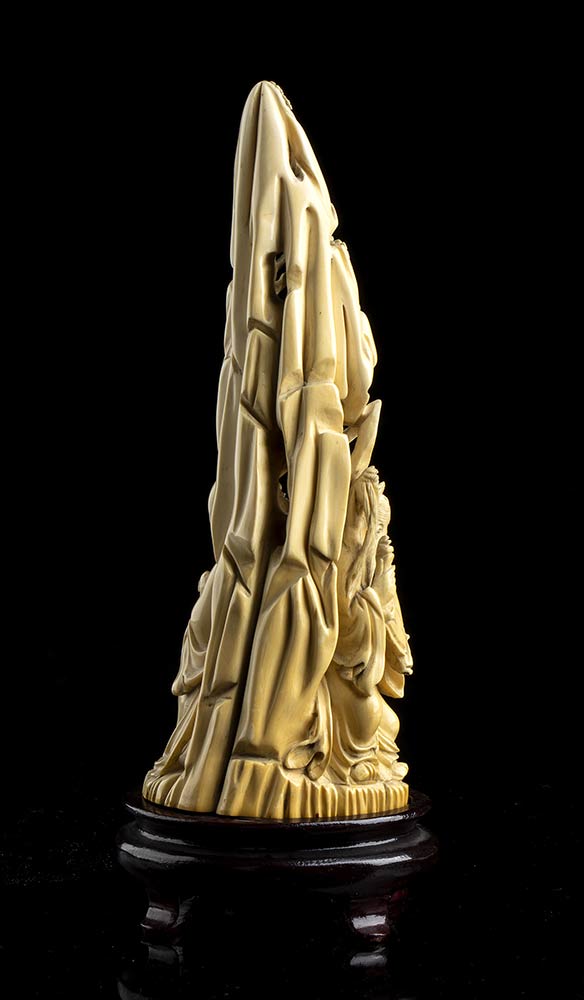 GRUPPO IN AVORIO CON MONTAGNA E FIGURE