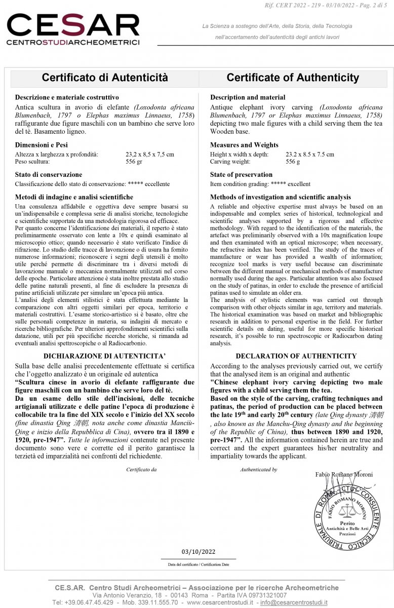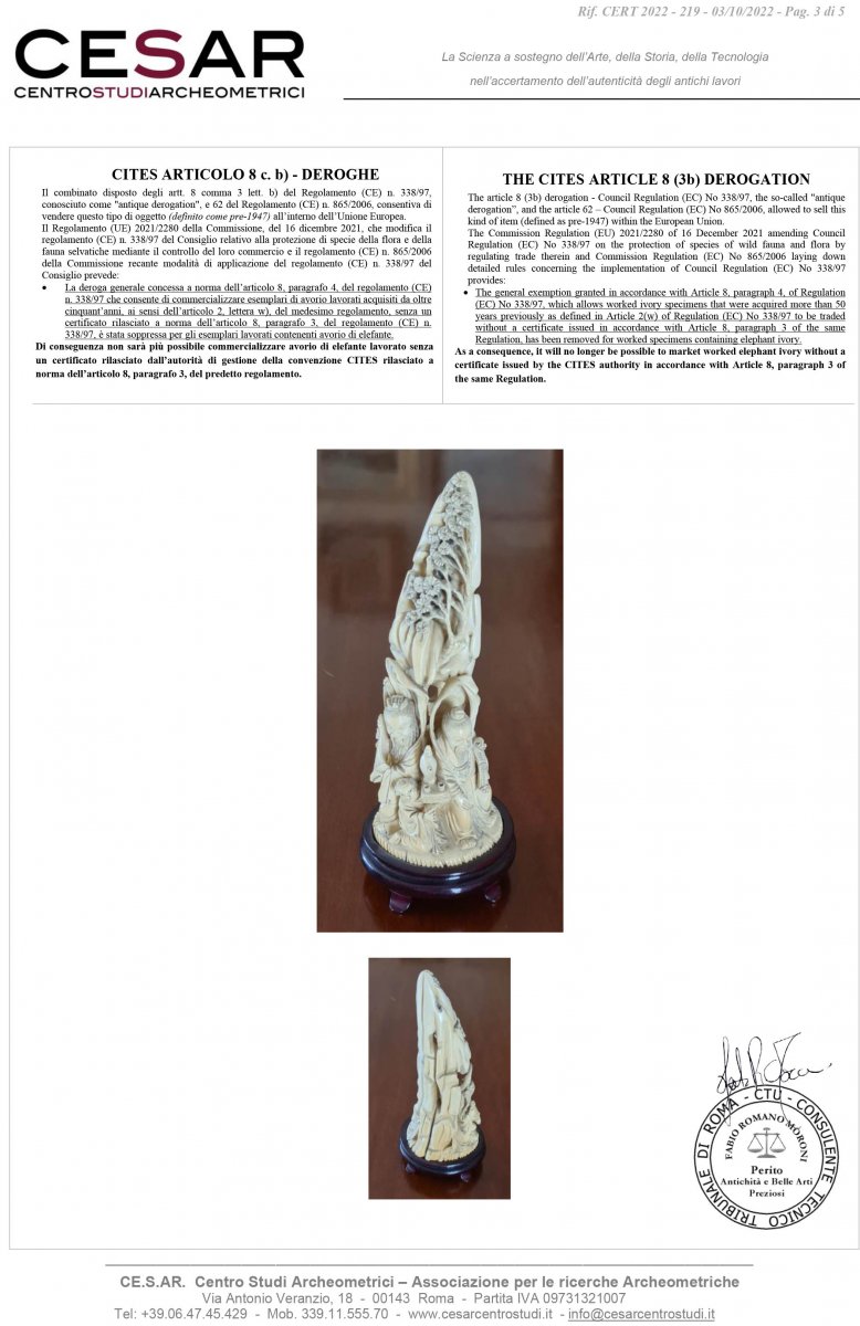 Accompagnato da certificato di autenticità Ce.S.Ar. Centro Studi Archeometrici e da certificato CITES.