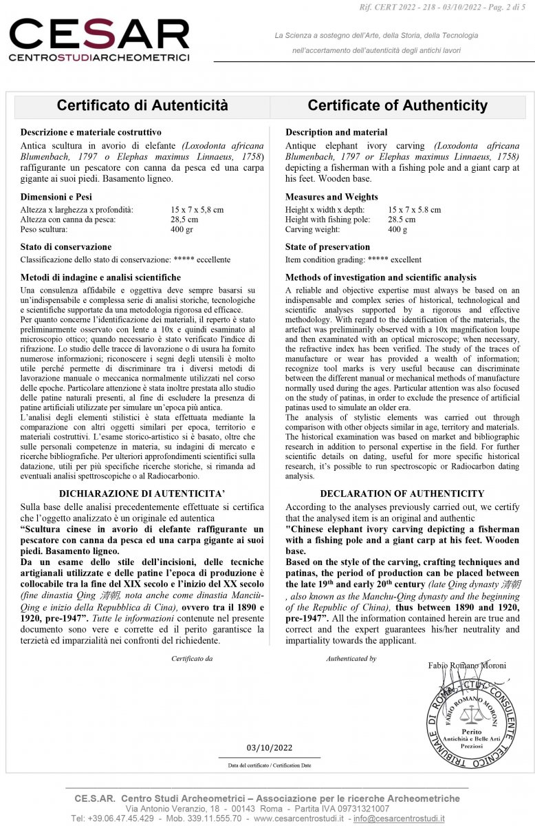 Accompagnato da certificato di autenticità Ce.S.Ar. Centro Studi Archeometrici e da certificato CITES.