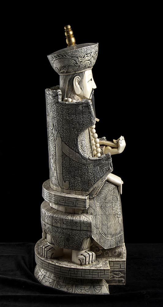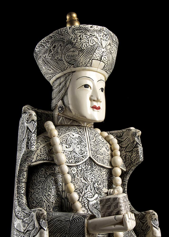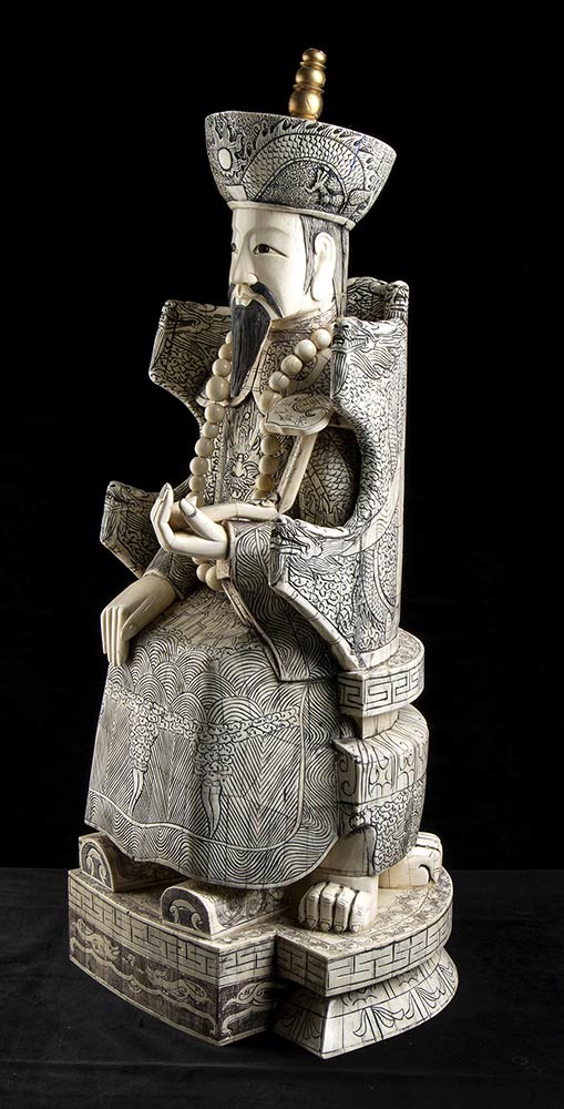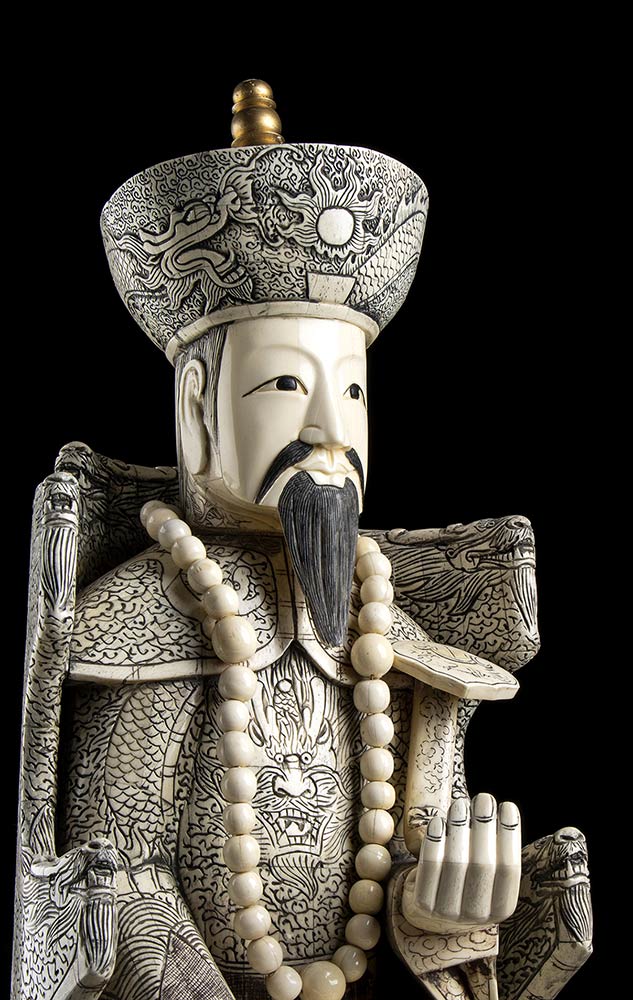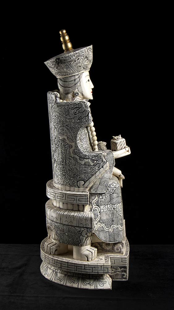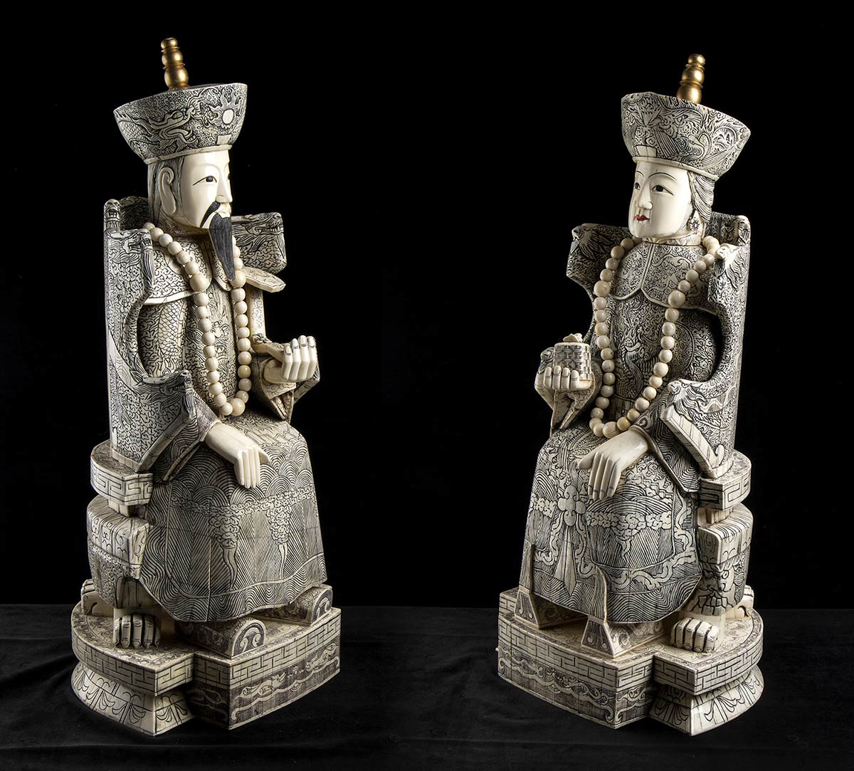COPPIA DI GRANDI FIGURE DI IMPERATORE E IMPERATRICE IN OSSO