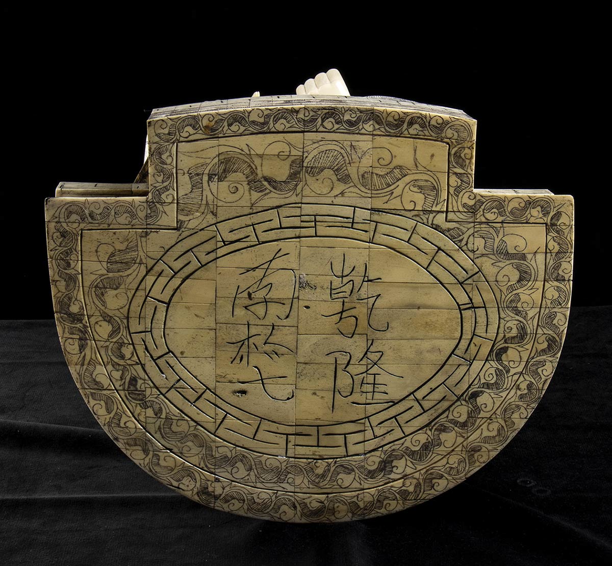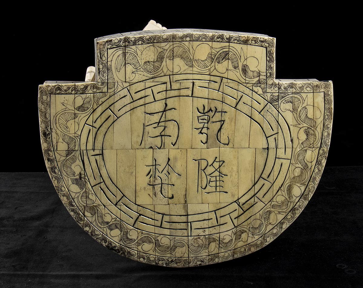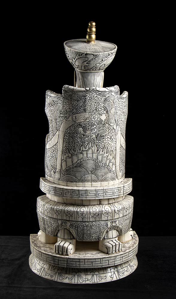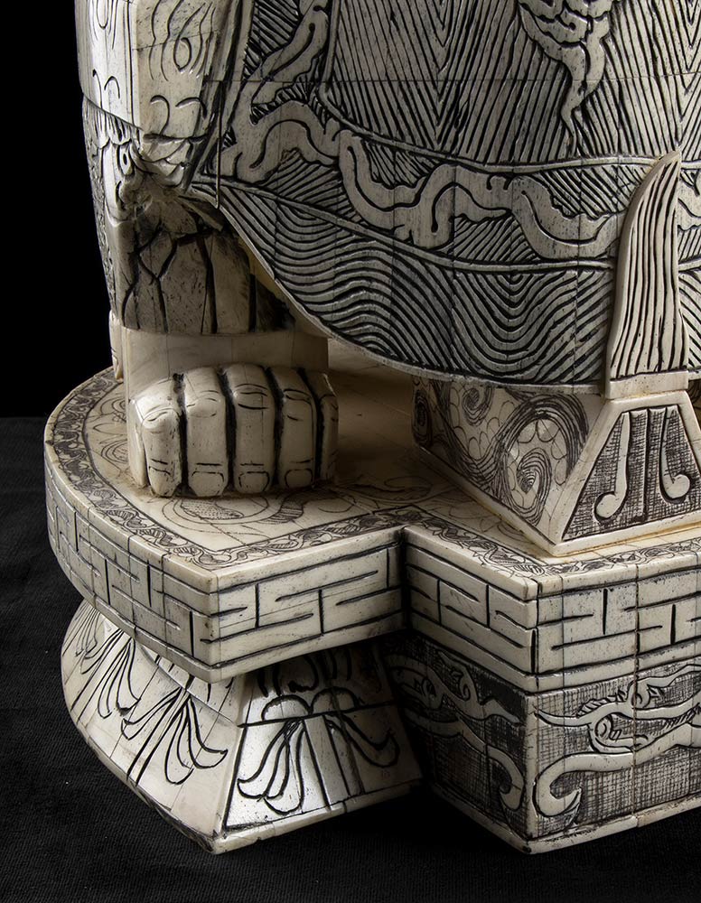 COPPIA DI GRANDI FIGURE DI IMPERATORE E IMPERATRICE IN OSSO