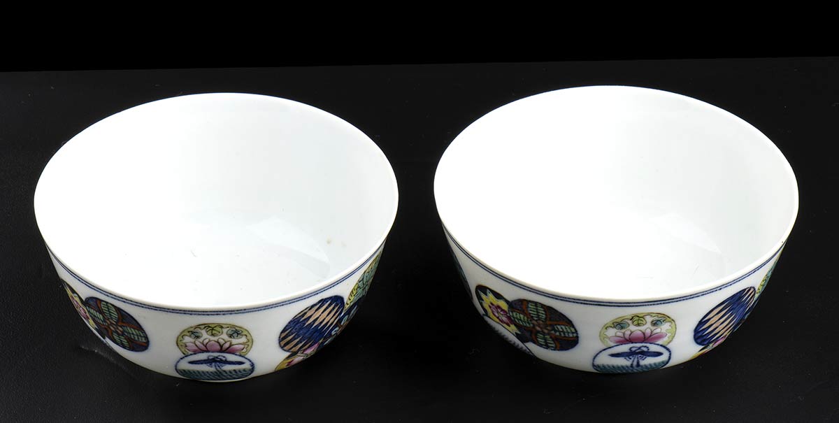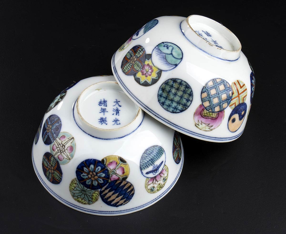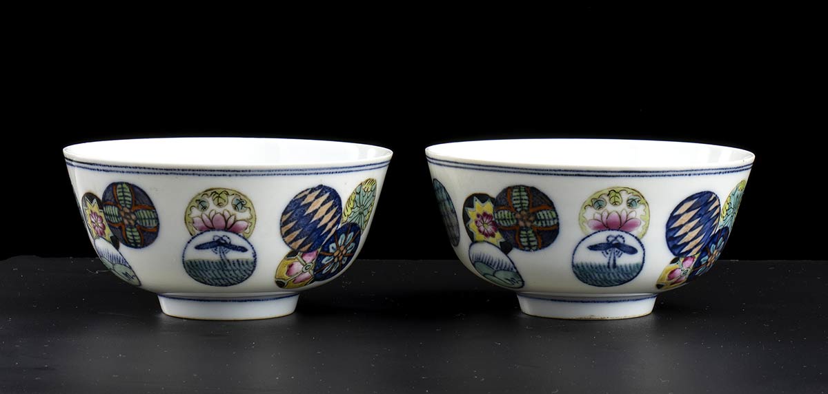 COPPIA DI PICCOLE CIOTOLE IN PORCELLANA CON DECORO A SMALTI POLICROMI