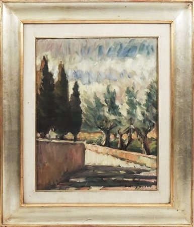 DINO MIGLIORINI (1907-2005) Paesaggio di campagna olio su tavoletta, firmato, in cornice cm 50x40