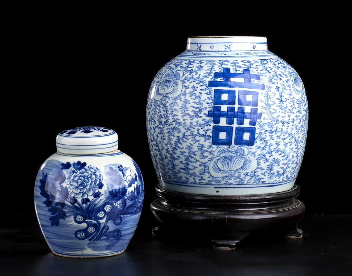 DUE GIARE IN PORCELLANA ‘BIANCO E BLU’, UNA CON COPERCHIO