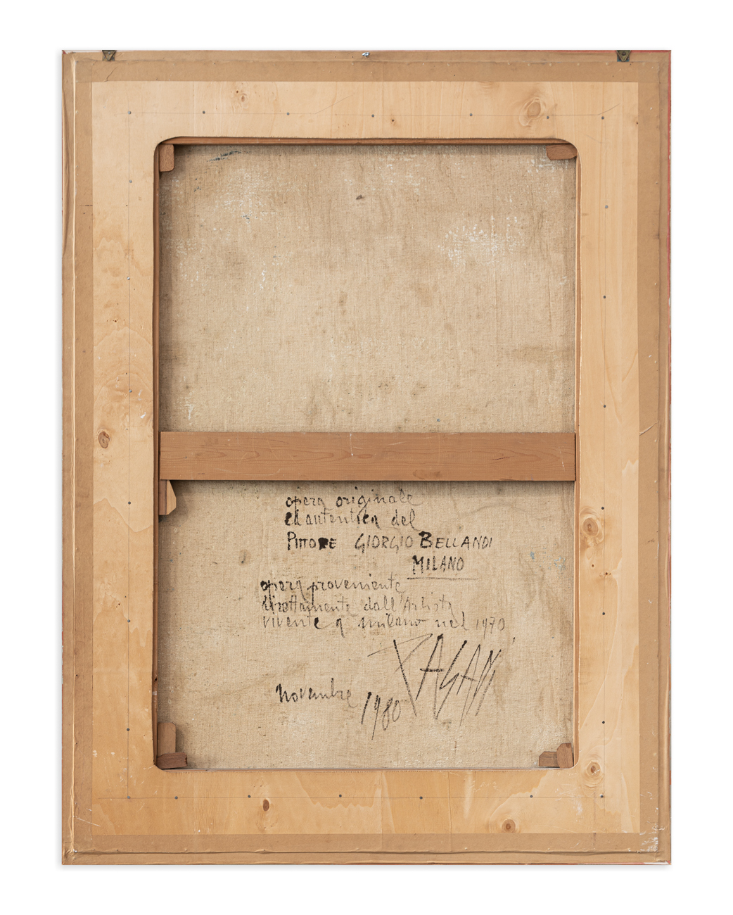 Dichiarazione di autenticità e provenienza del Gallerista Pagani al retro