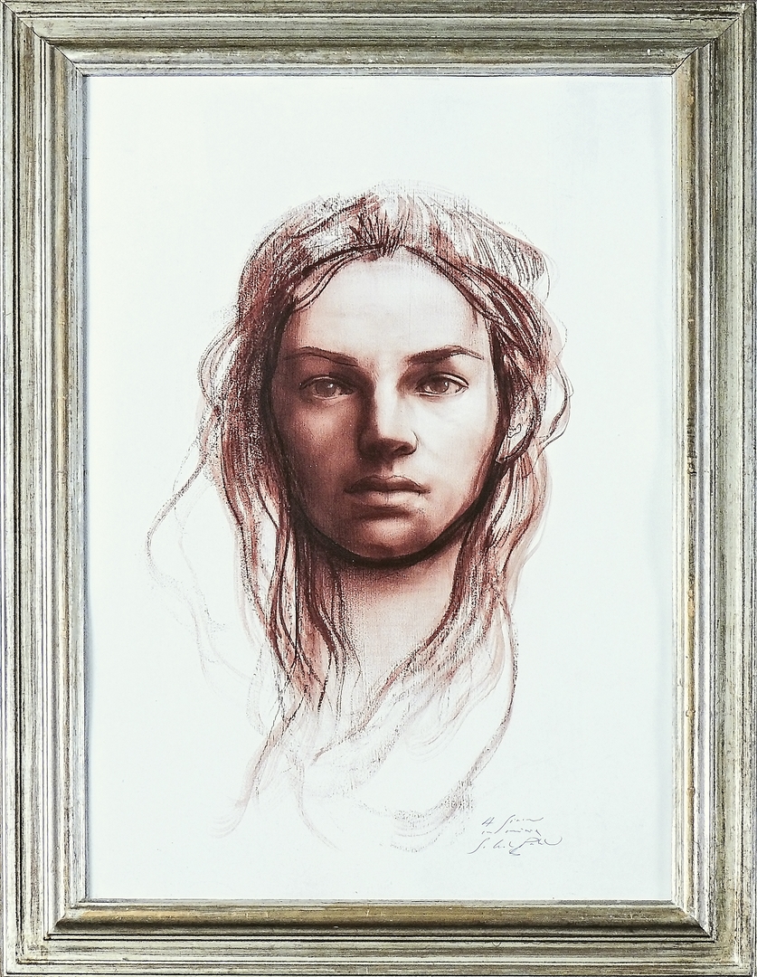 SILVESTRO PISTOLESI Volto femminile sanguigna e acquerello su cartoncino, firmato, in cornice cm 56x37