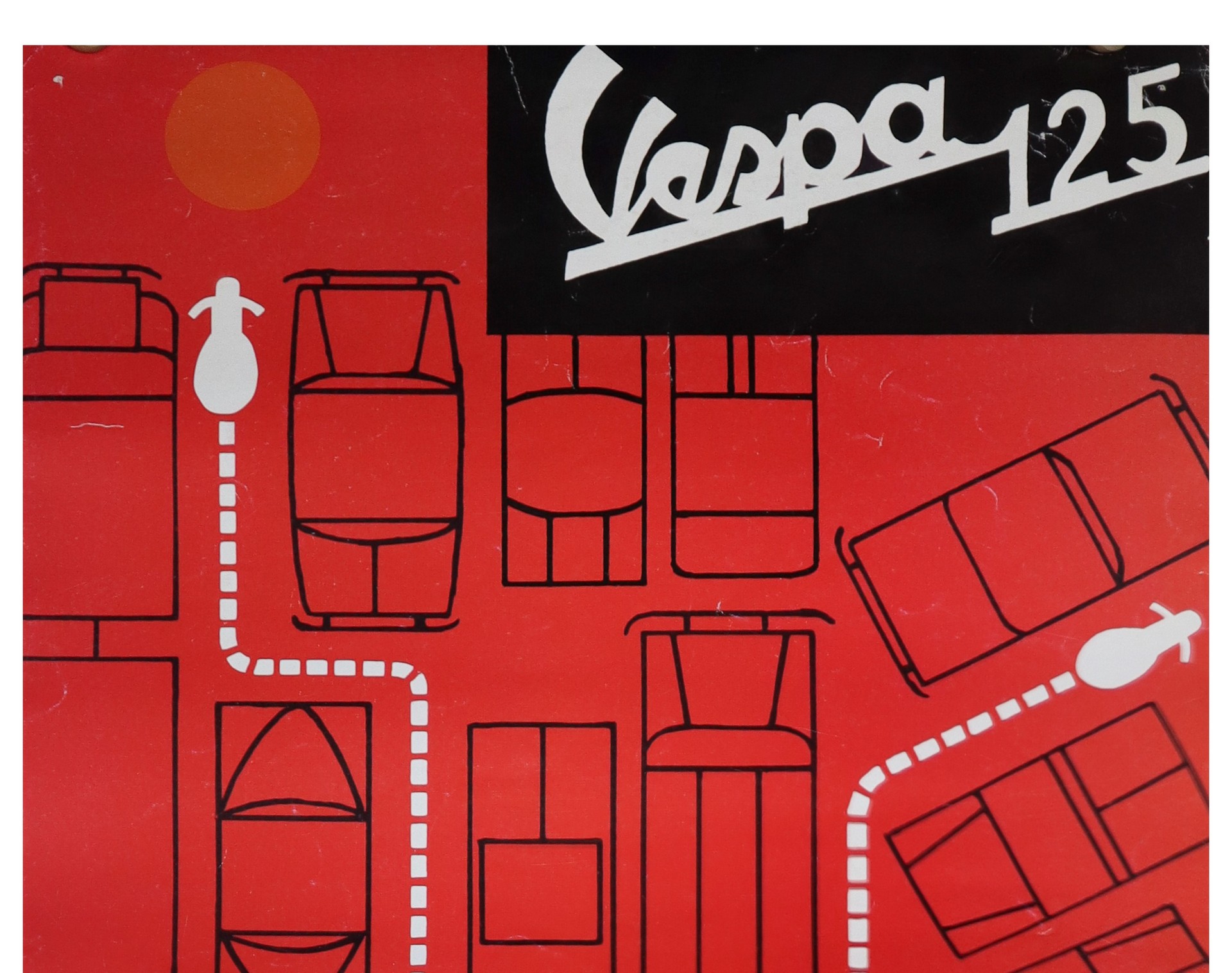 Locandina Vespa 125, 1980 approx h cm 83x31 Presenti normali segni del tempo