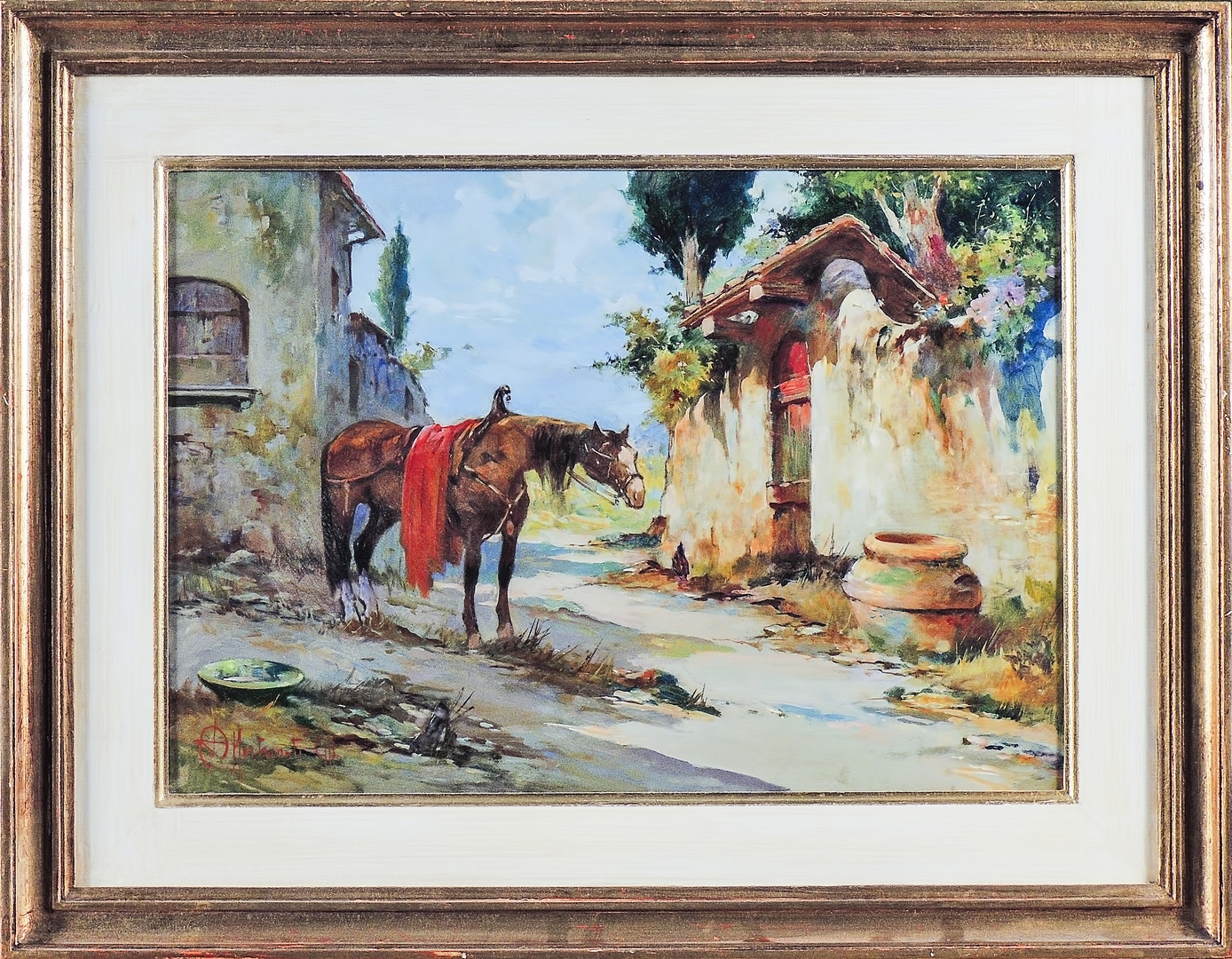ALDO AFFORTUNATI (1906-1991) Campagna e cavallo olio su faesite, firmato, al...