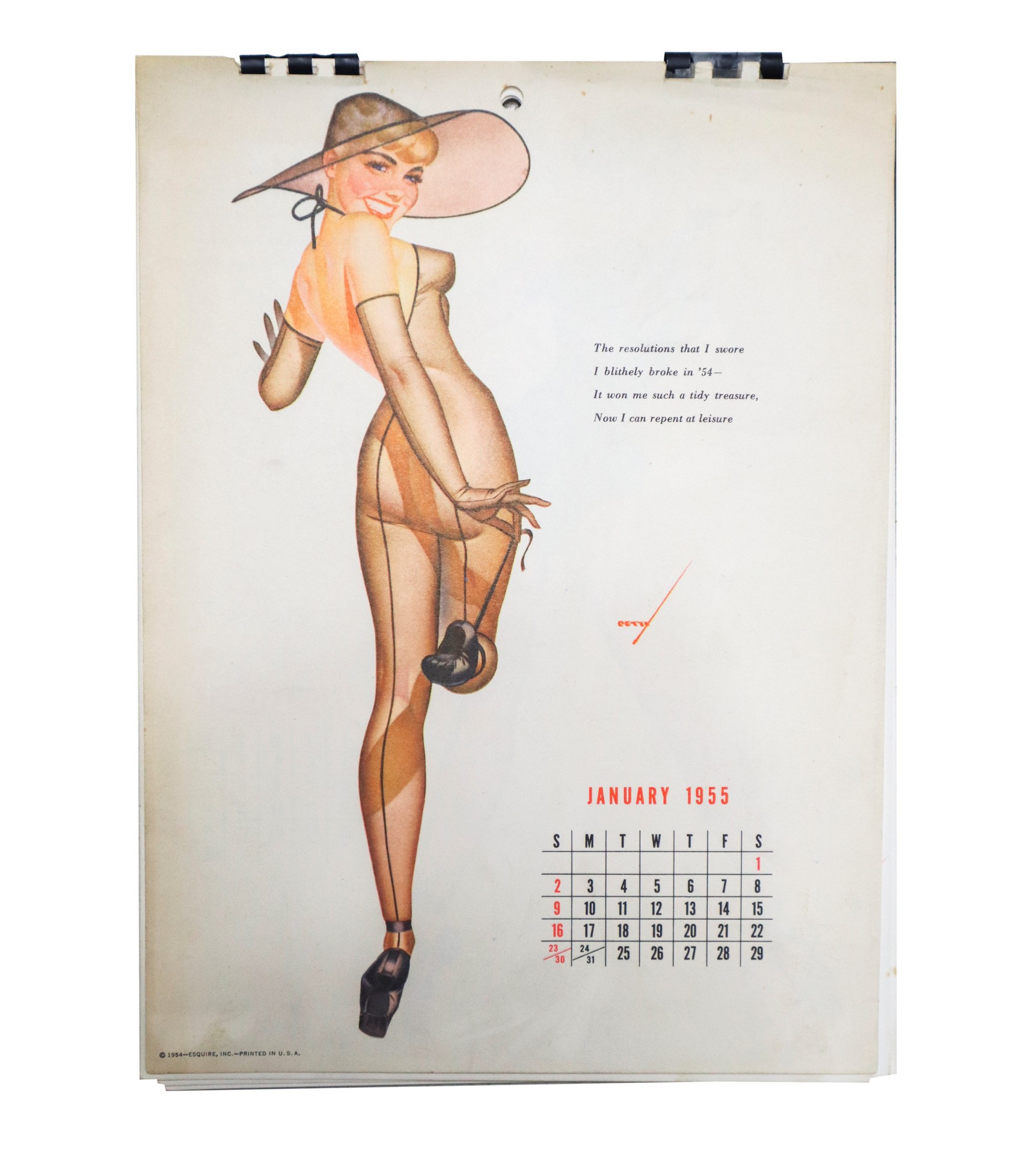 Calendario Pinup, 1955 cm 28x21 Rivista Esquire, illustrazioni di George Petty, soggetti di nudo parziale. Presenti normali segni del tempo