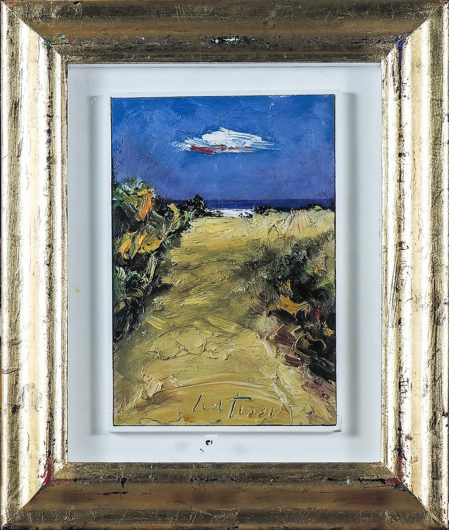 SERGIO SCATIZZI (1918-2009) Marina olio su tavoletta, firmato, in cornice cm 30x20 Corredato dell'autentica dell'autore su fotografia