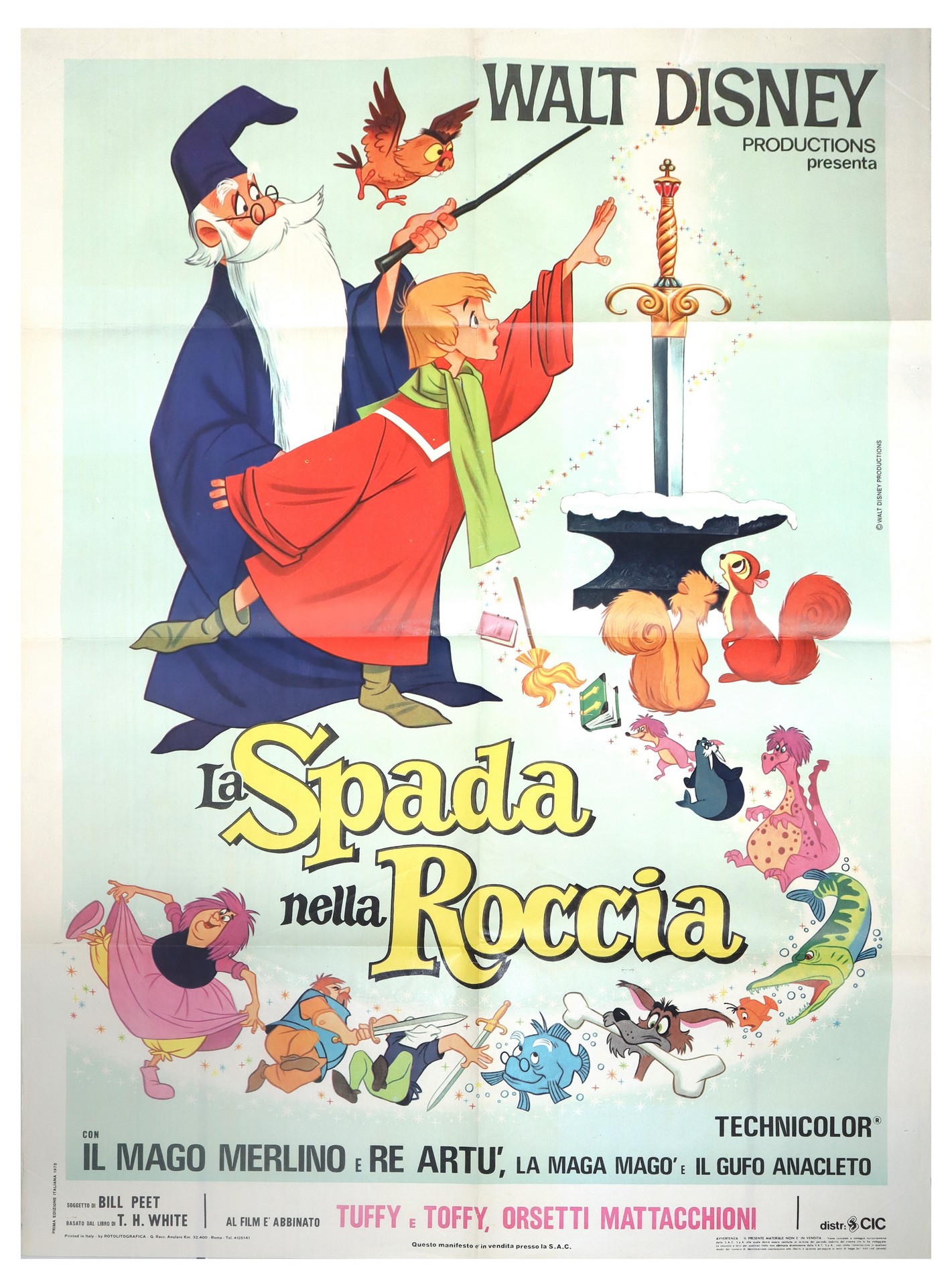Manifesto cinema due fogli ''La spada nella roccia'', 1973 cm 140x100 Printed in Italy by Rotolitografica - Roma, normali segni d'uso, presente nastro sul retro