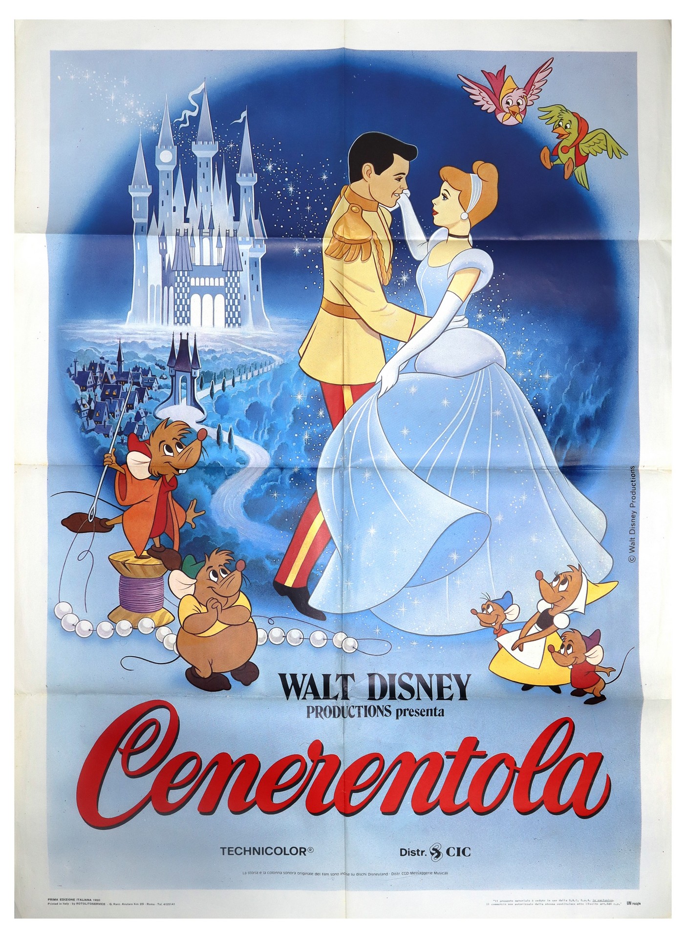 Manifesto cinema due fogli ''Cenerentola'', 1950 cm 140x100 Printed in Italy by Rotolitografica - Roma, normali segni d'uso