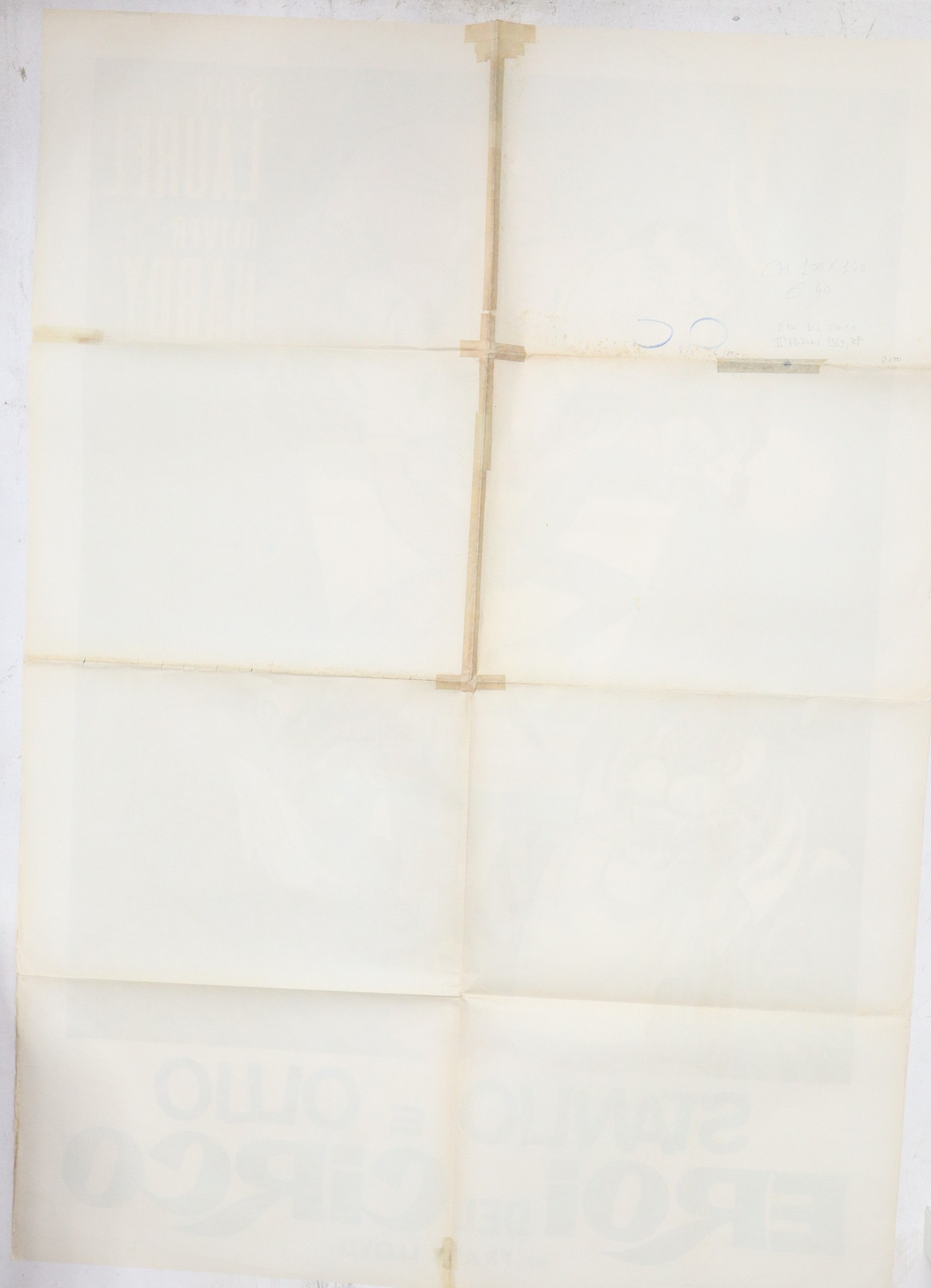 Manifesto cinema due fogli ''Stanlio e Olio eroi del circo'', 1969 cm 140x100 Printed in Italy by Rotolitografica - Roma, normali segni d'uso, presente nastro