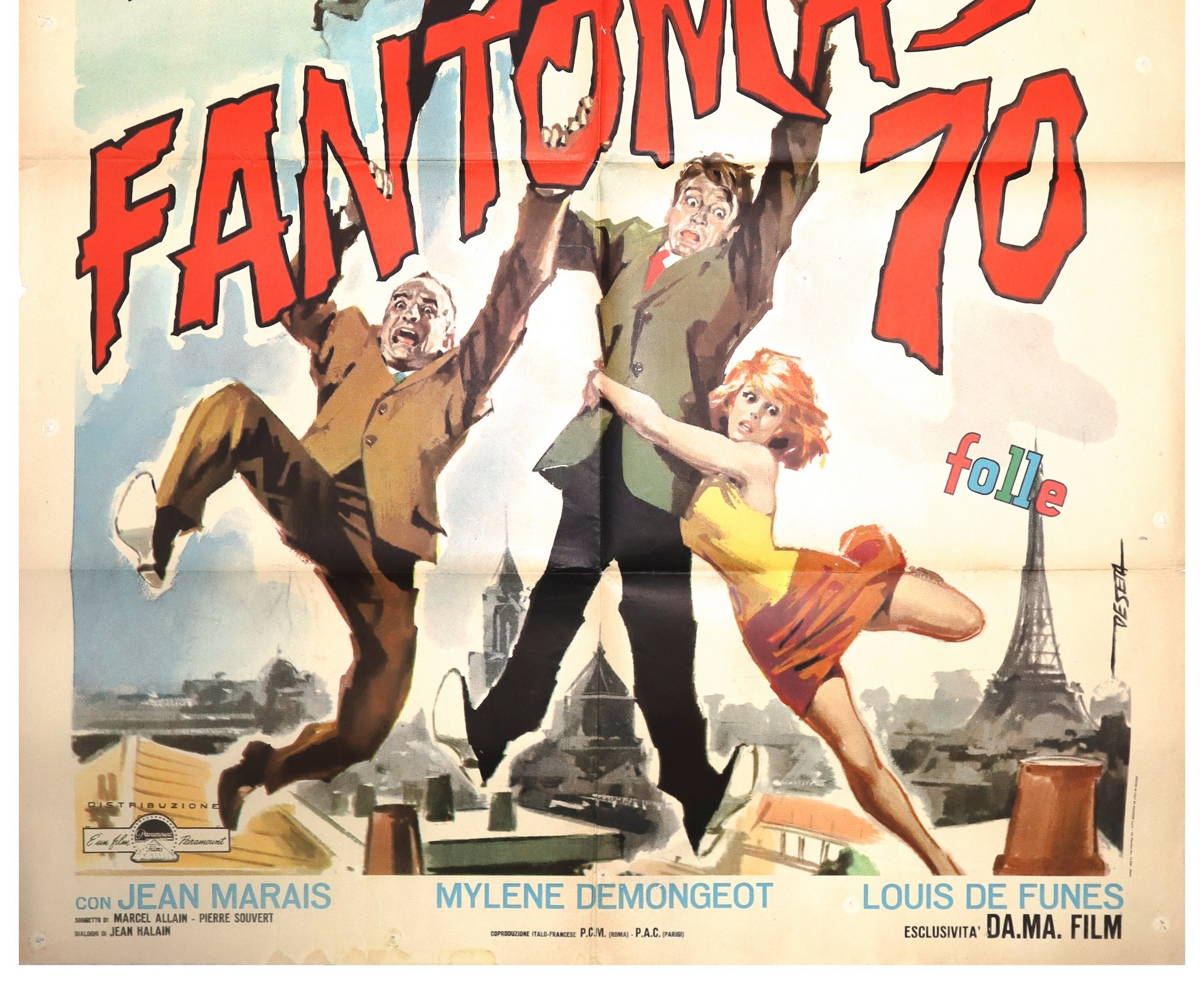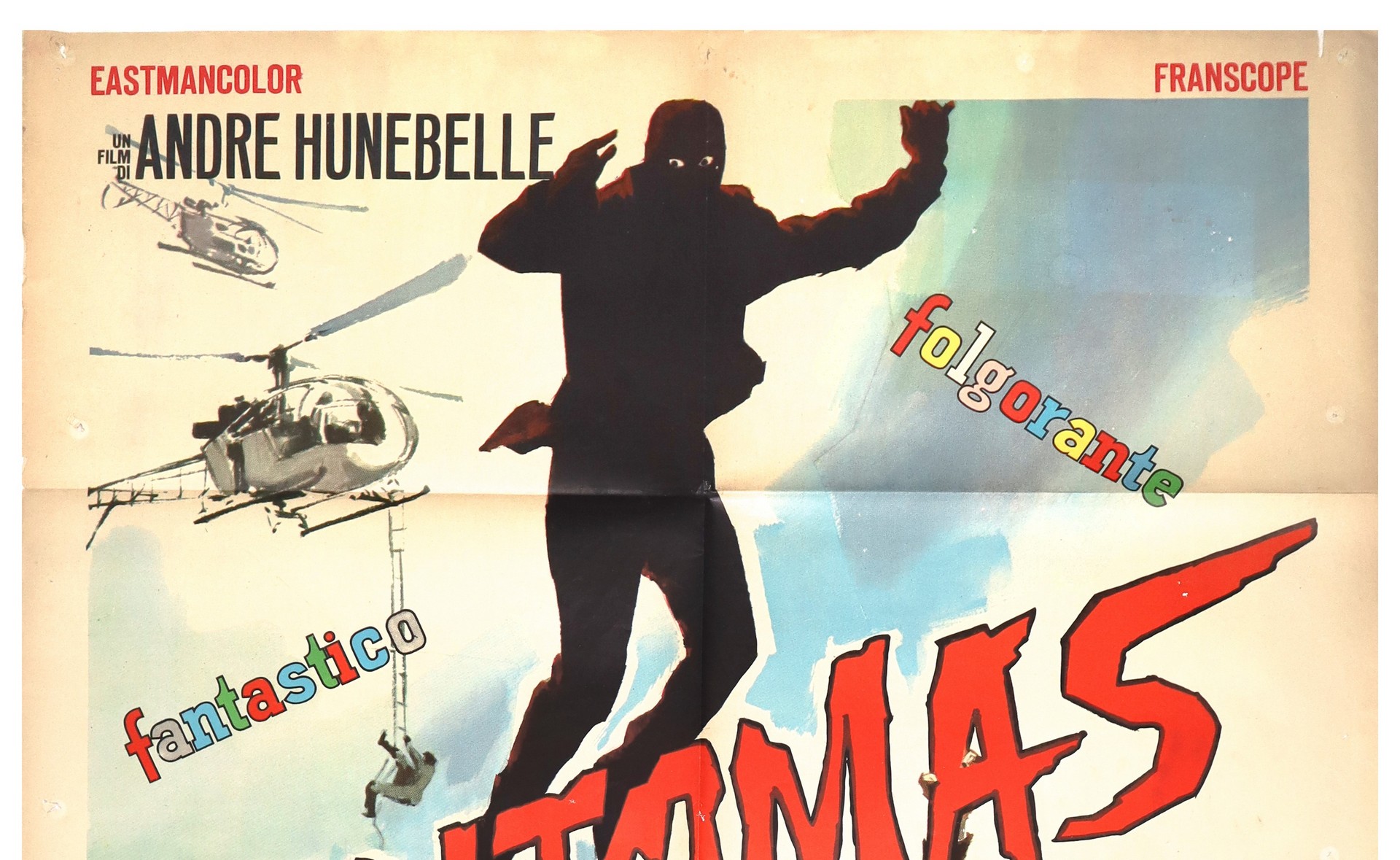 Manifesto cinema due fogli ''Fantomas 70'' cm 140x100 Printed in Italy by Policrom - Roma, normali segni d'uso, presenti buchi