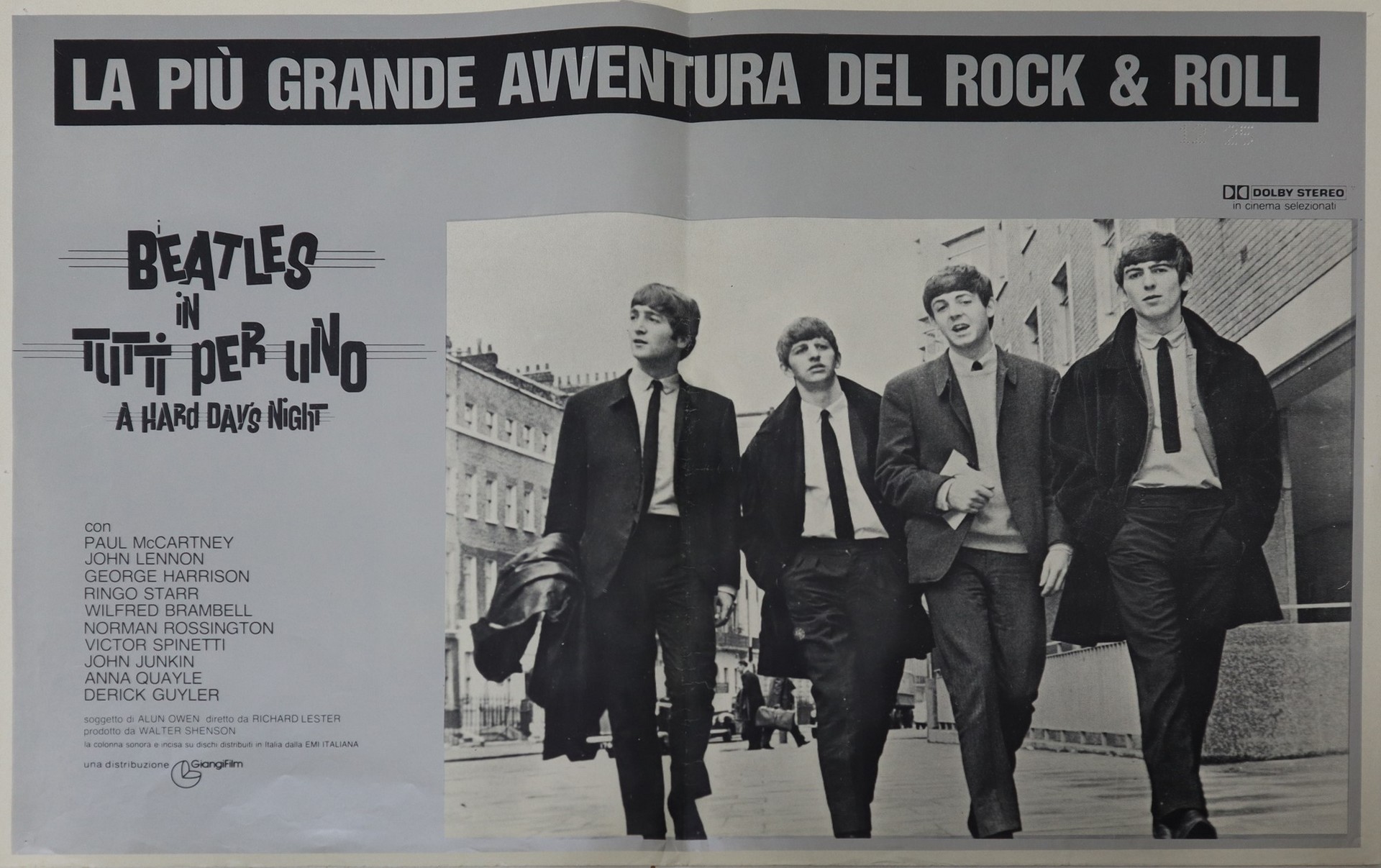 Fotobusta ''I Beatles in tutti per uno a hard day's night'', 1976 cm 50 x cm 70 GiangiFilm, Seconda Edizione Italiana, normali segni d'usoGiangiFilm, Seconda Edizione Italiana, normali segni d'uso