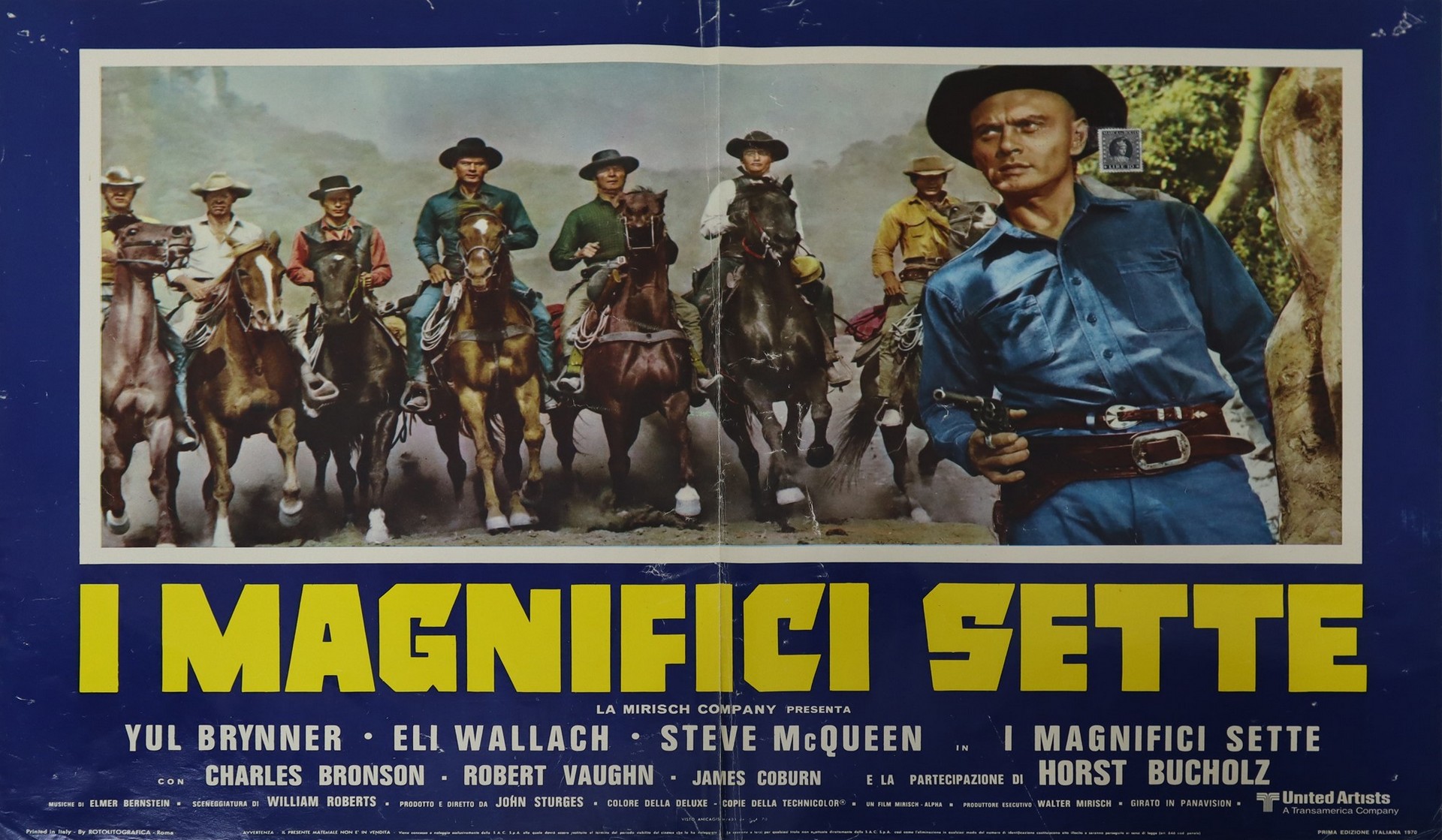 Fotobusta ''I magnifici sette'', 1970 cm 50 x cm 70 Prima Edizione Italiana, Rotolitografica, datata in basso a destra, normali segni d'usoPrima Edizione Italiana, Rotolitografica, datata in basso a destra, normali segni d'uso