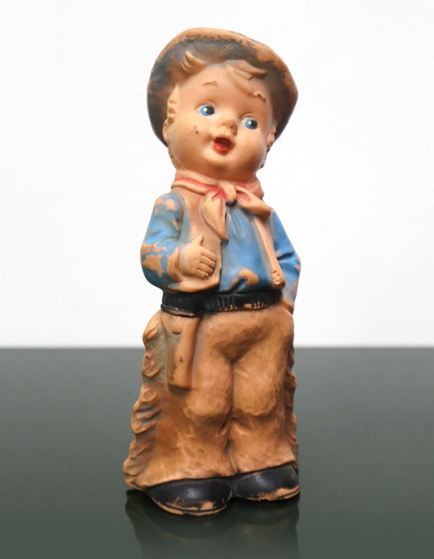 CowBoy, 1960 h cm 19 Pupazzo con sonaglio, presenti mancanze di colore, sonaglio non funzionante.Pupazzo con sonaglio, presenti mancanze di colore, sonaglio non funzionante.