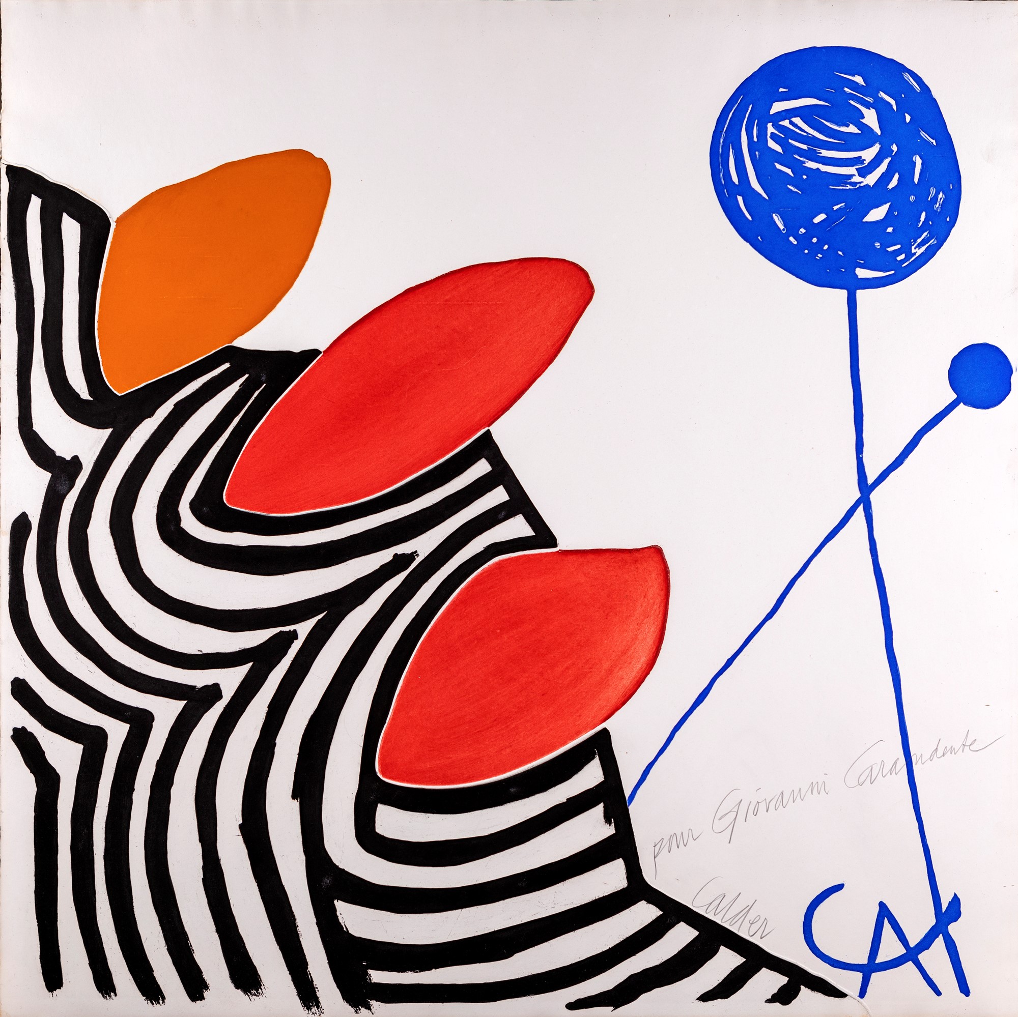 Dedica e firma in basso a destra "per Giovanni Carandente, Calder". Misure in cornice cm 98x98