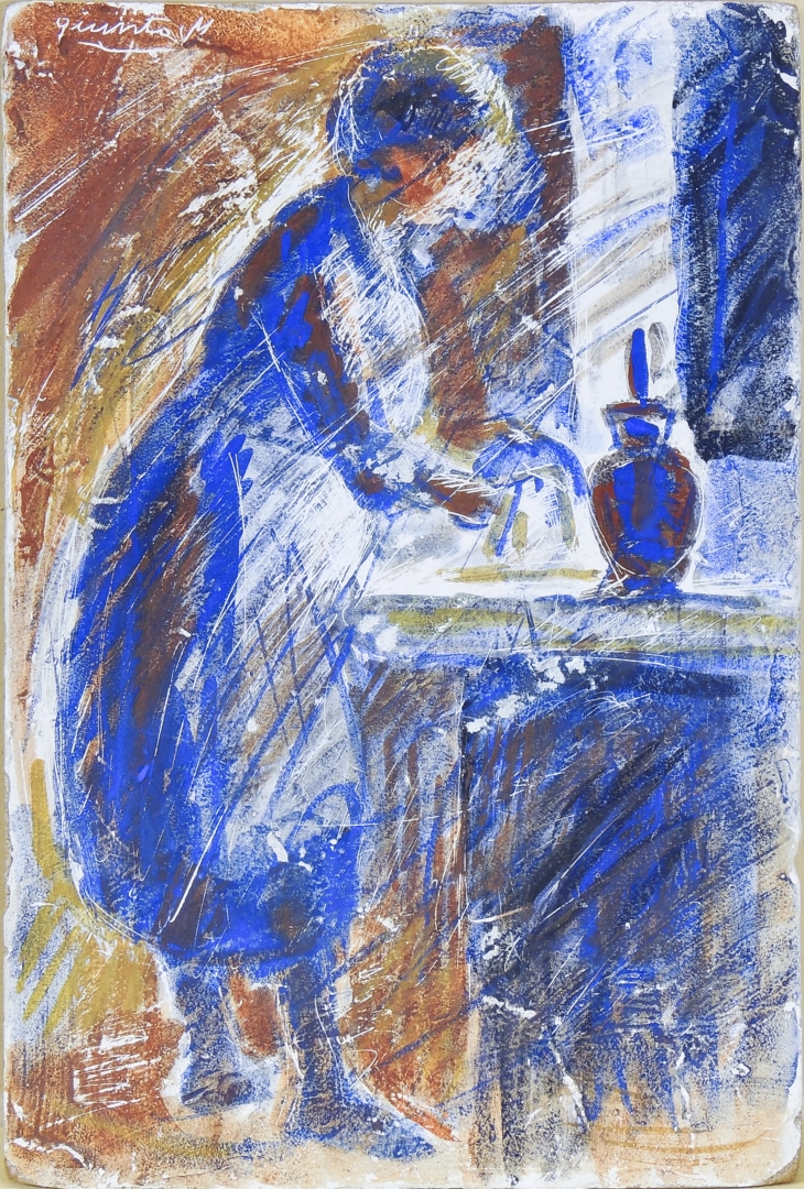 Lotto 1512 | QUINTO MARTINI (1908-1990) Veduta d'interno con donna olio su tavoletta,...
