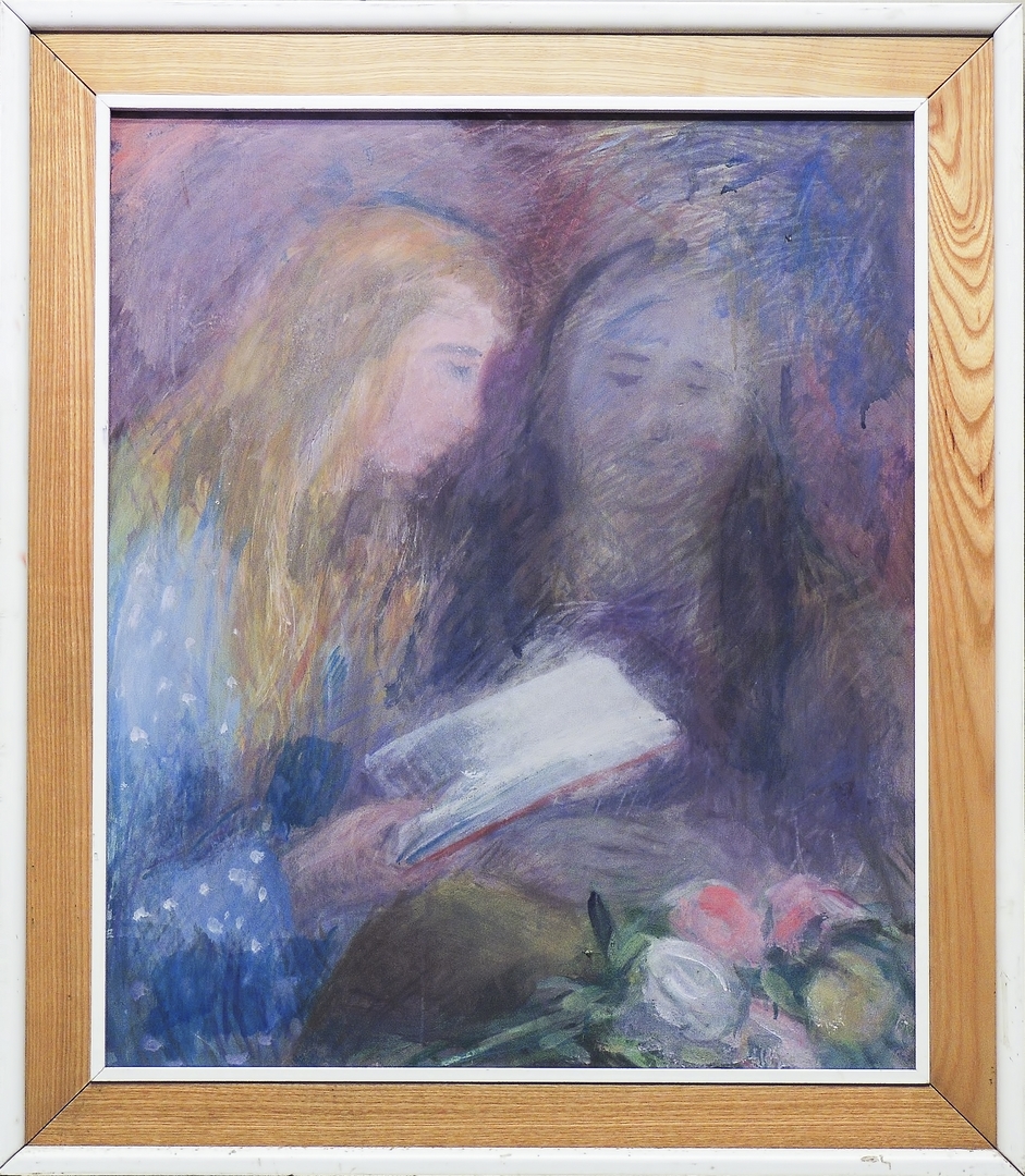 QUINTO MARTINI (1908-1990) La lettura olio su tavoletta, firmato al verso sul telaio, in cornice cm 72x62 Reca al verso timbri e etichetta "Archivio Quinto Martini, n° 1015" Provenienza: Eredi Quinto Martini