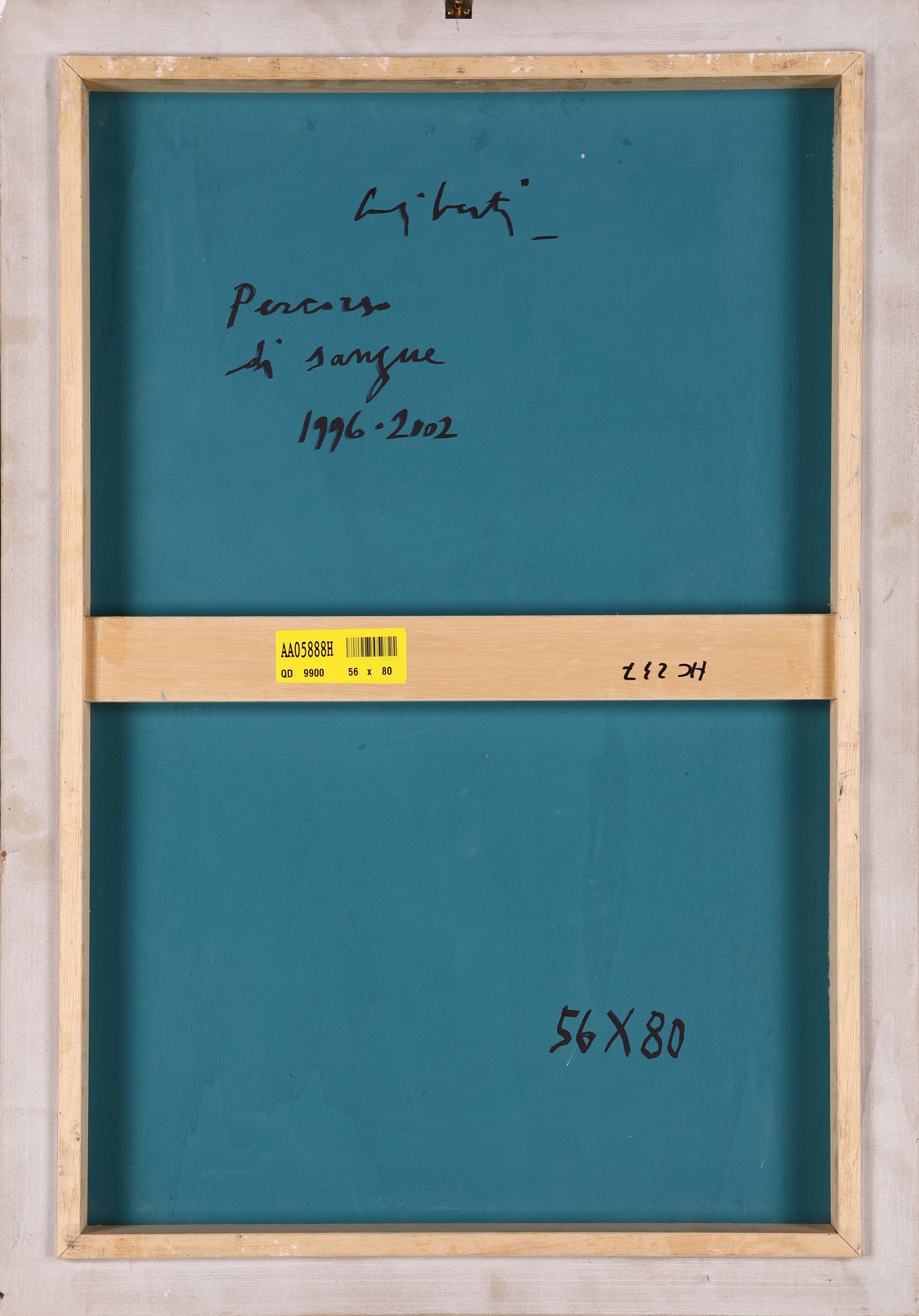 Firma, data e titolo al verso "Celiberti, 1996-2002, Percorso di Sangue".