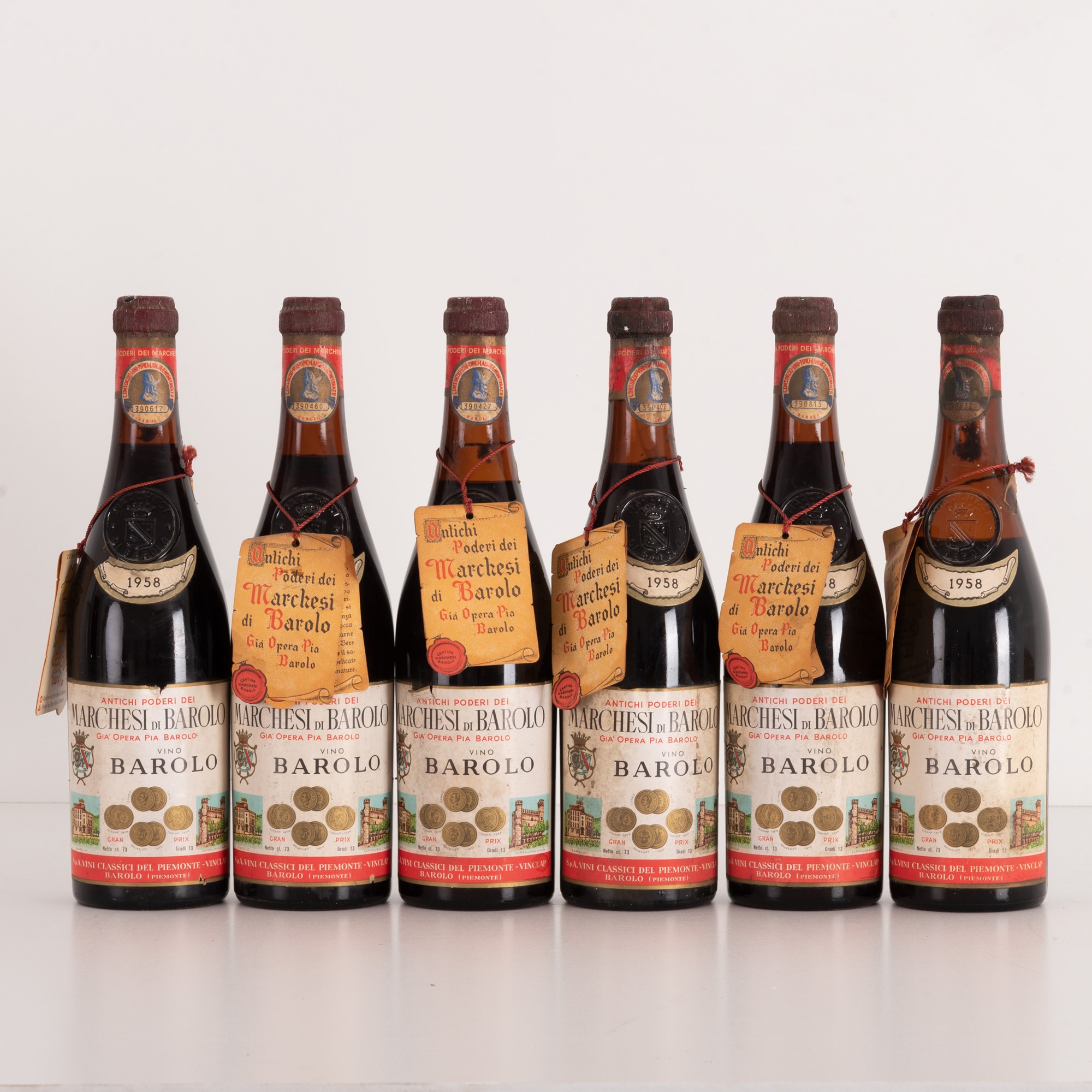 Lotto di 6 bottiglie Barolo Antichi Poderi dei Marchesi di Barolo già Opera Pia Barolo 1958