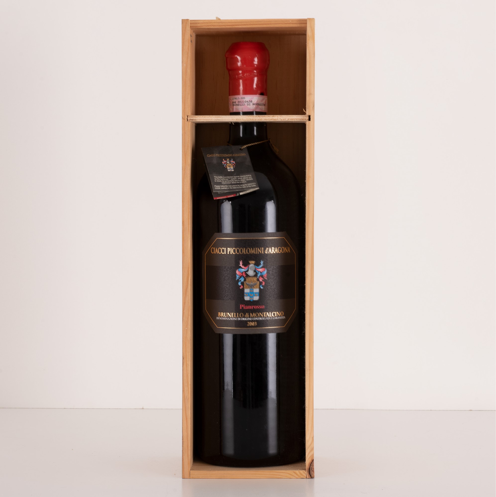 Lotto di 1 bottiglia doppio magnum in confezione di legno originale Brunello di Montalcino "Pianrosso" Ciacci Piccolomini d'Aragona 2003
