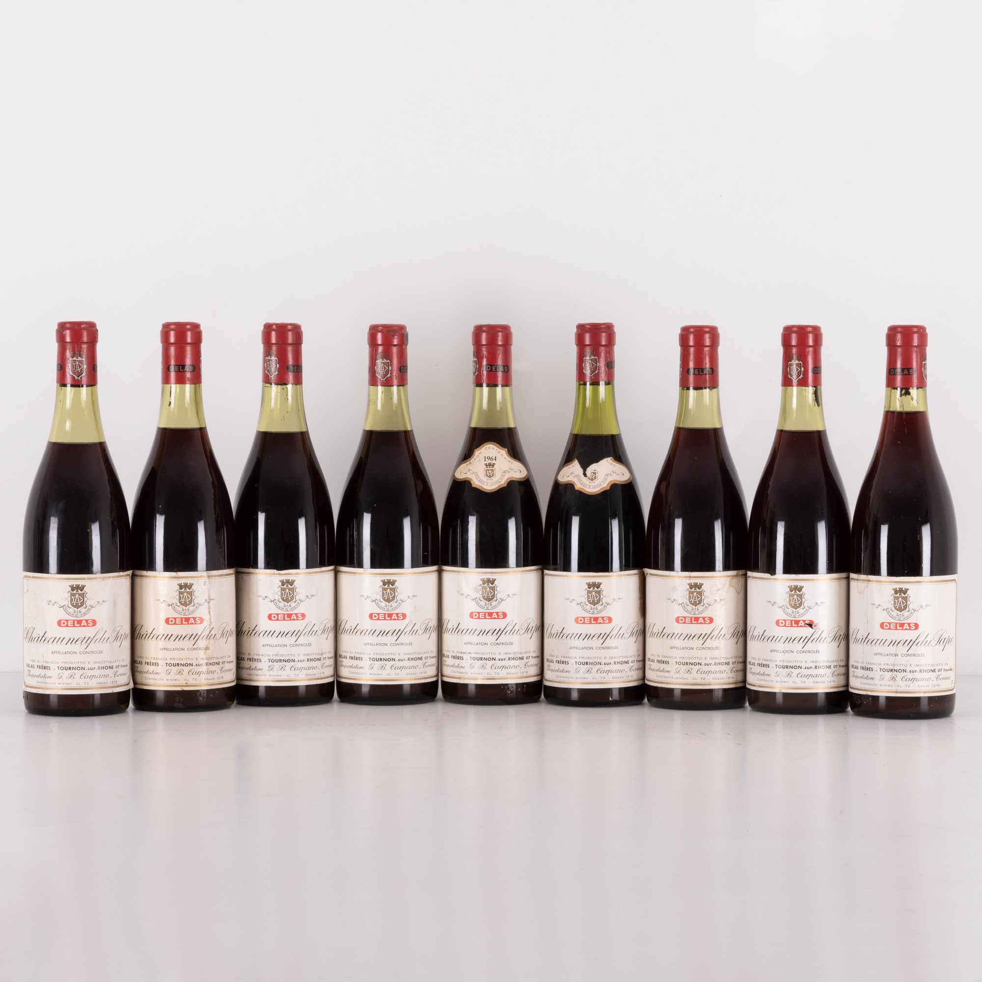 Lotto di 9 bottiglie Chateuuneuf de Pape Delas Freres 1964