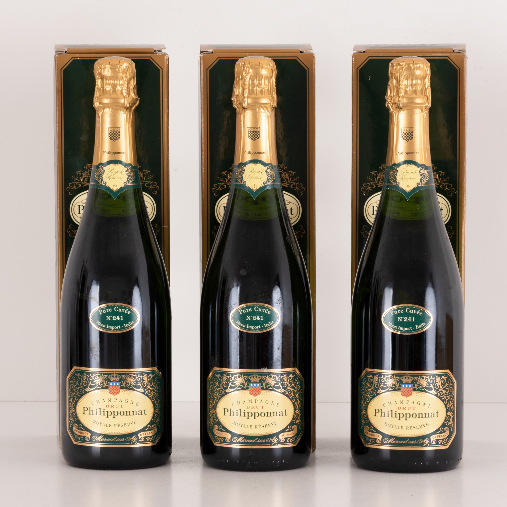 Lotto di 3 bottiglie Champagne con confezioni originali Philipponnat Royale Reserve pure cuvee