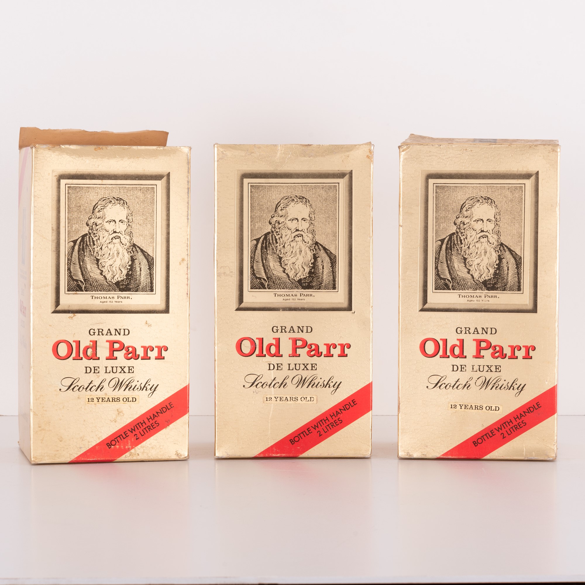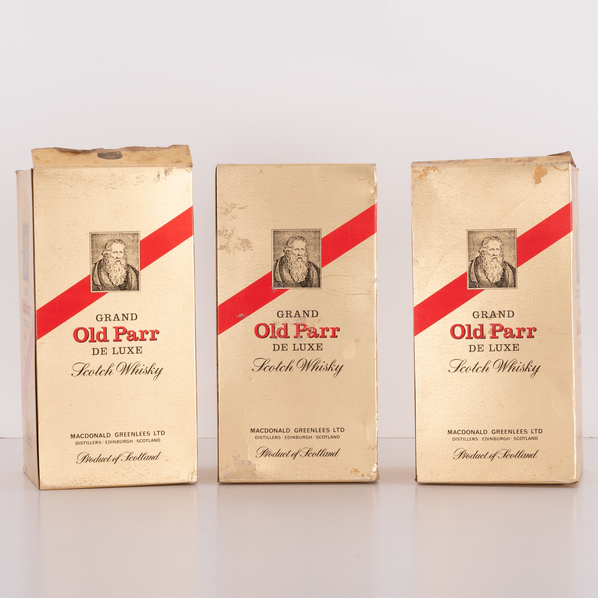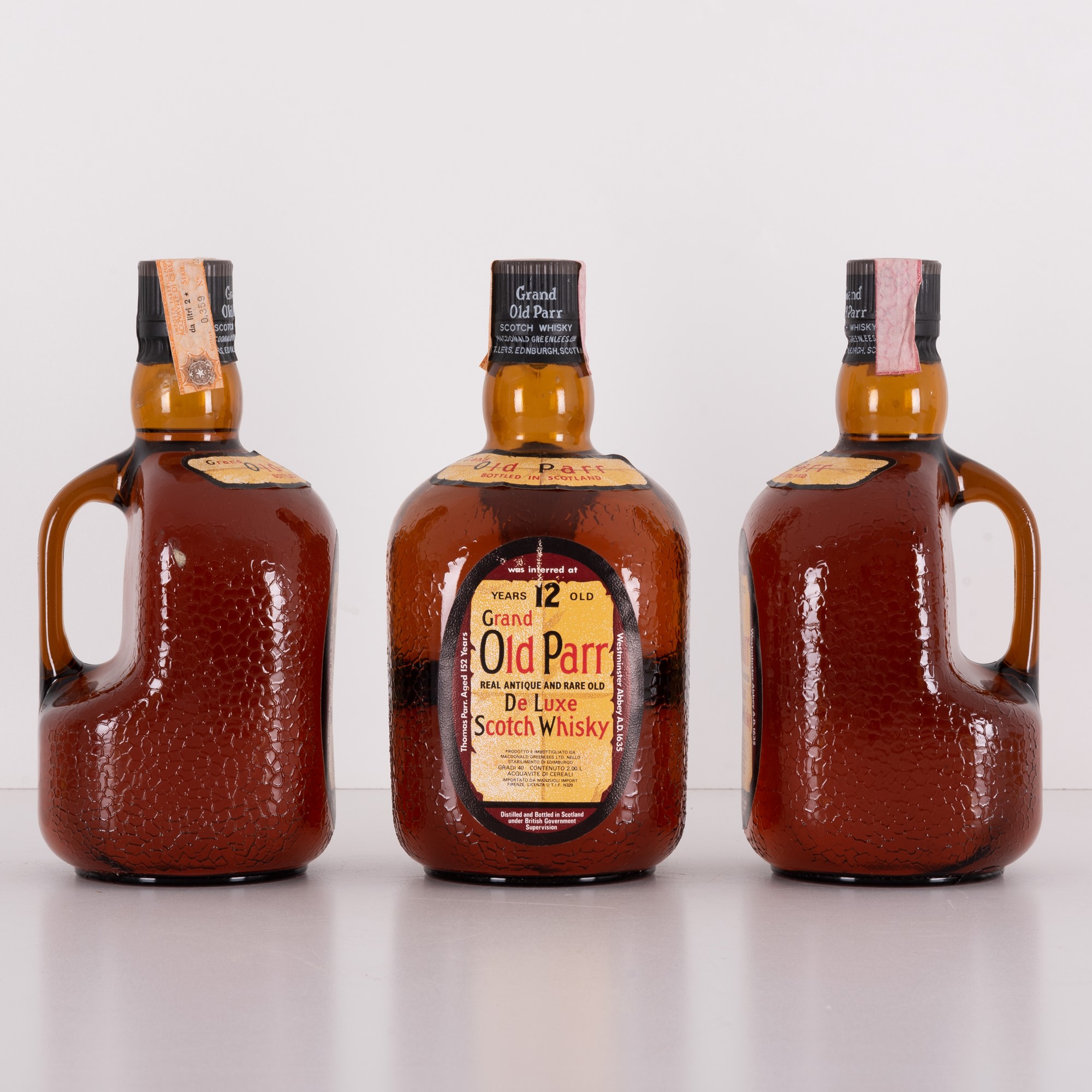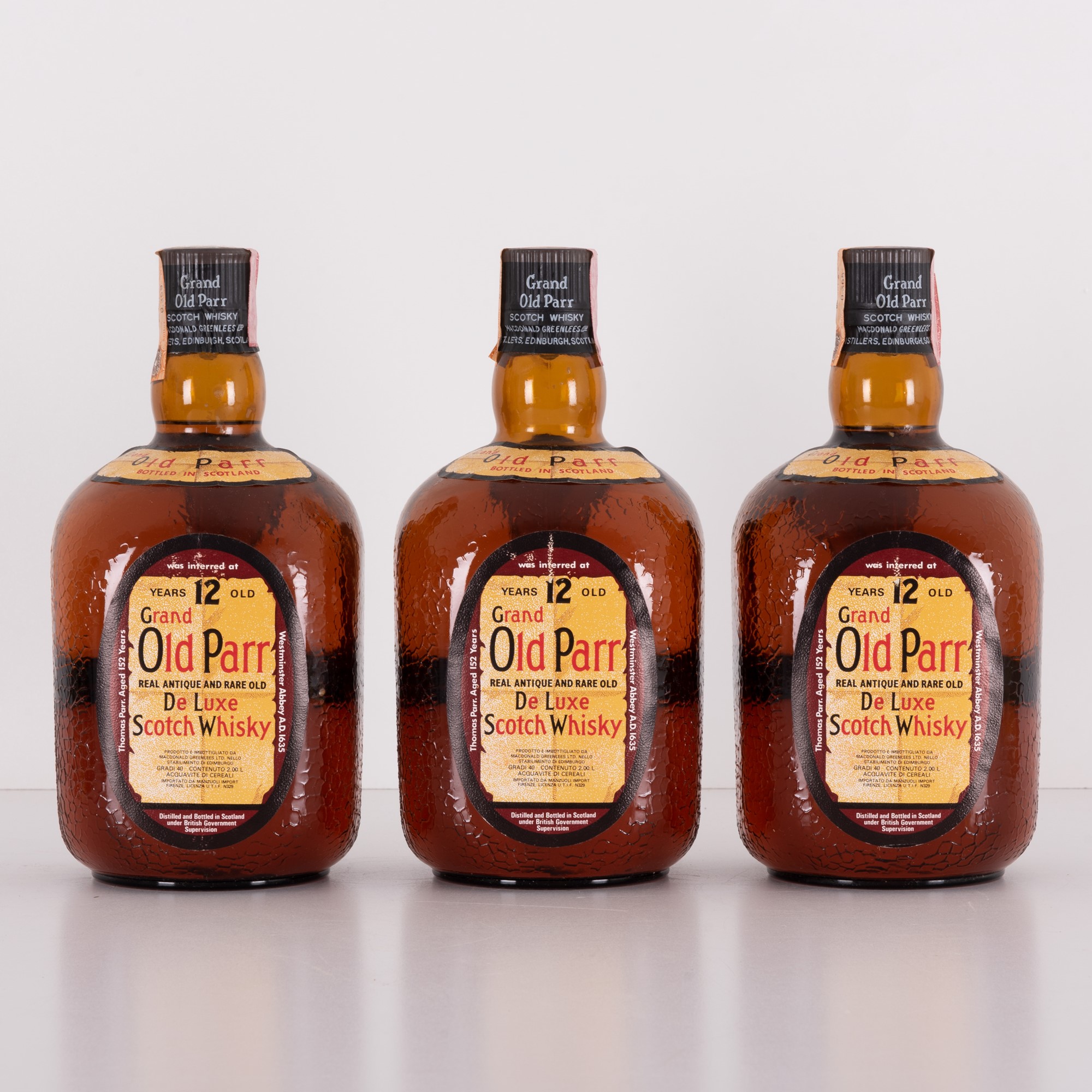 Lotto di 3 bottiglie Grand Old Parr Deluxe Schotch Whiskey Macdonald Greenlees Ltd Anni '70-'80