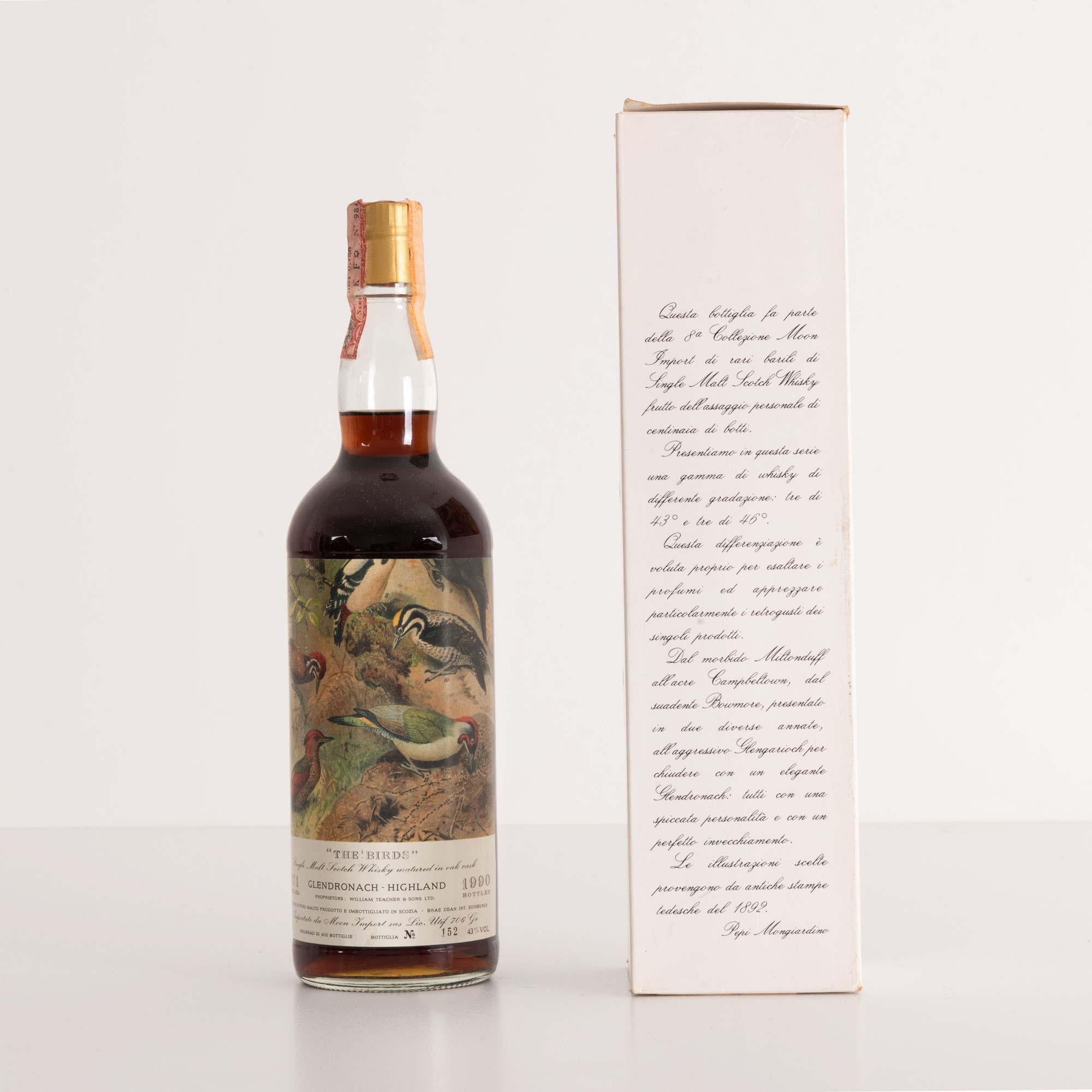 Gledronach Town Single Malt Schotch Whisky The Birds Mongiardino Distillato nel 1971; Imbottigliato nel 1990