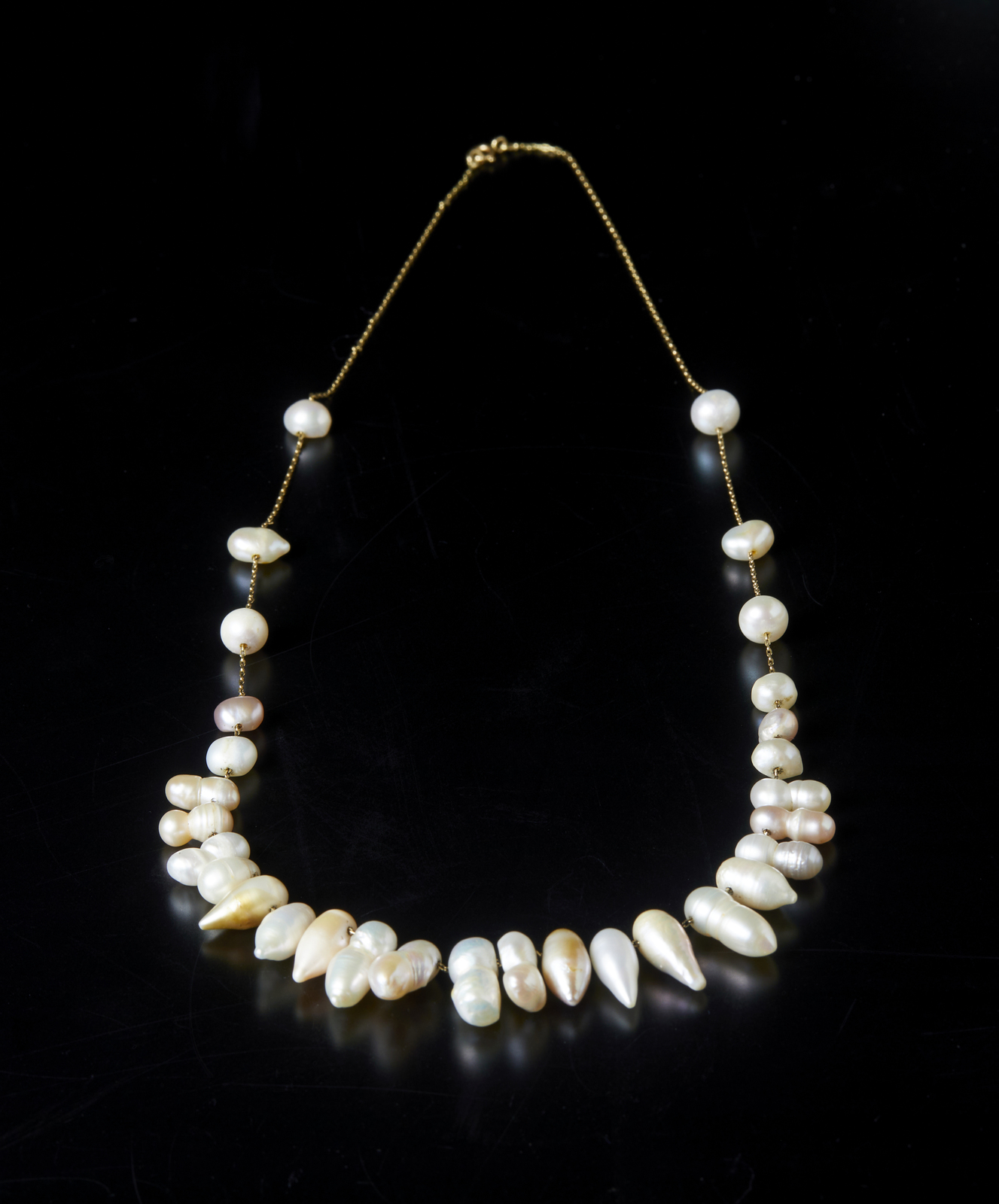 . - Catenina in oro giallo 750/1000 con e perle coltivate scaramazze.