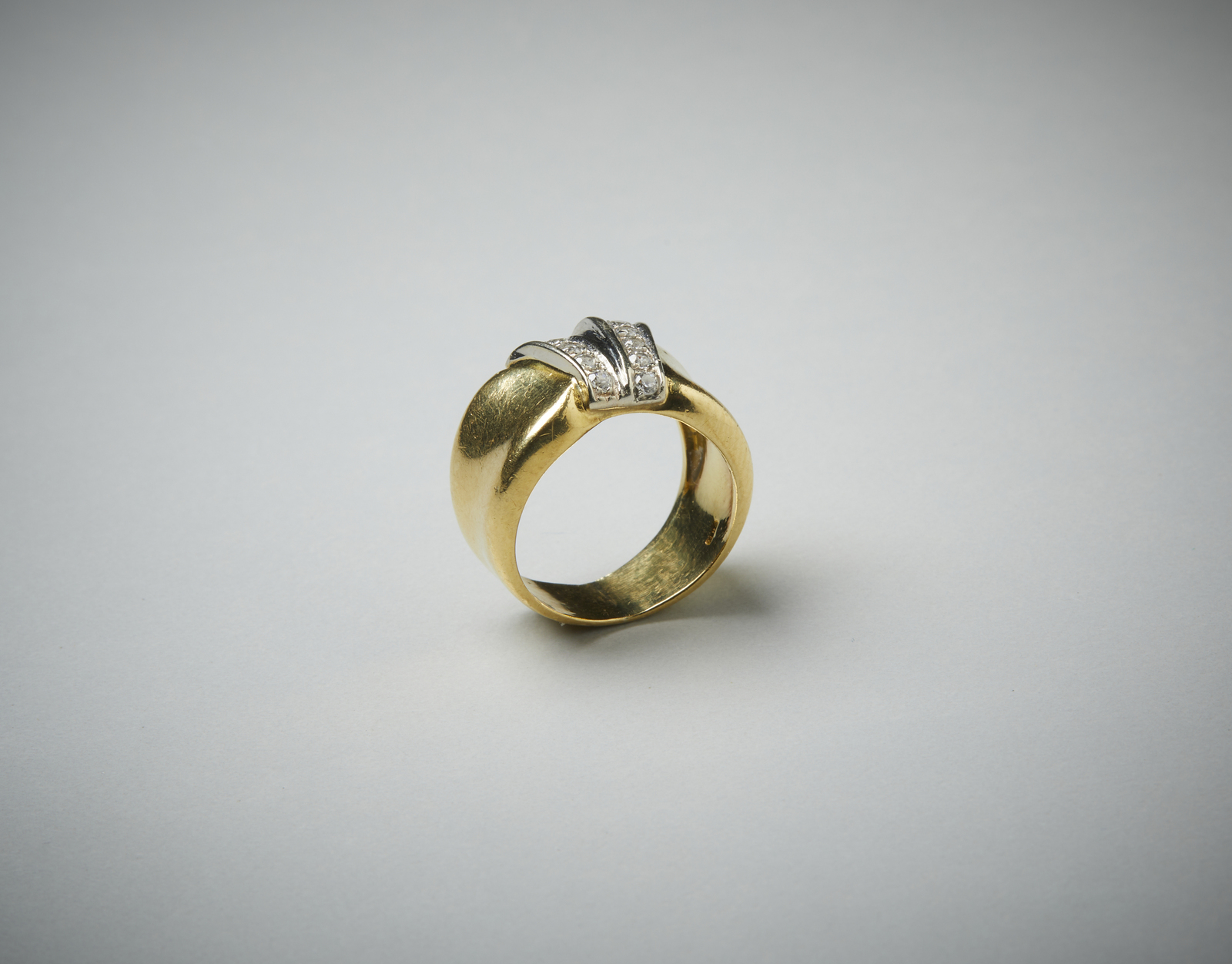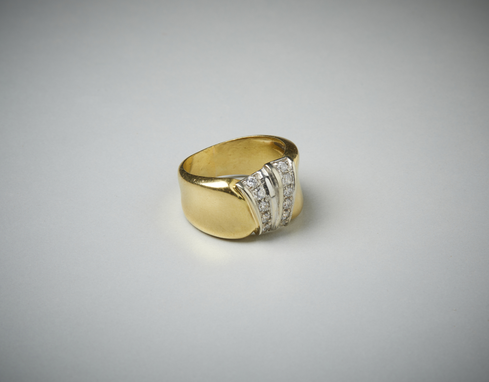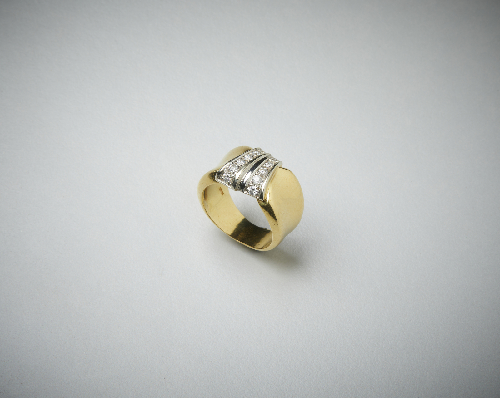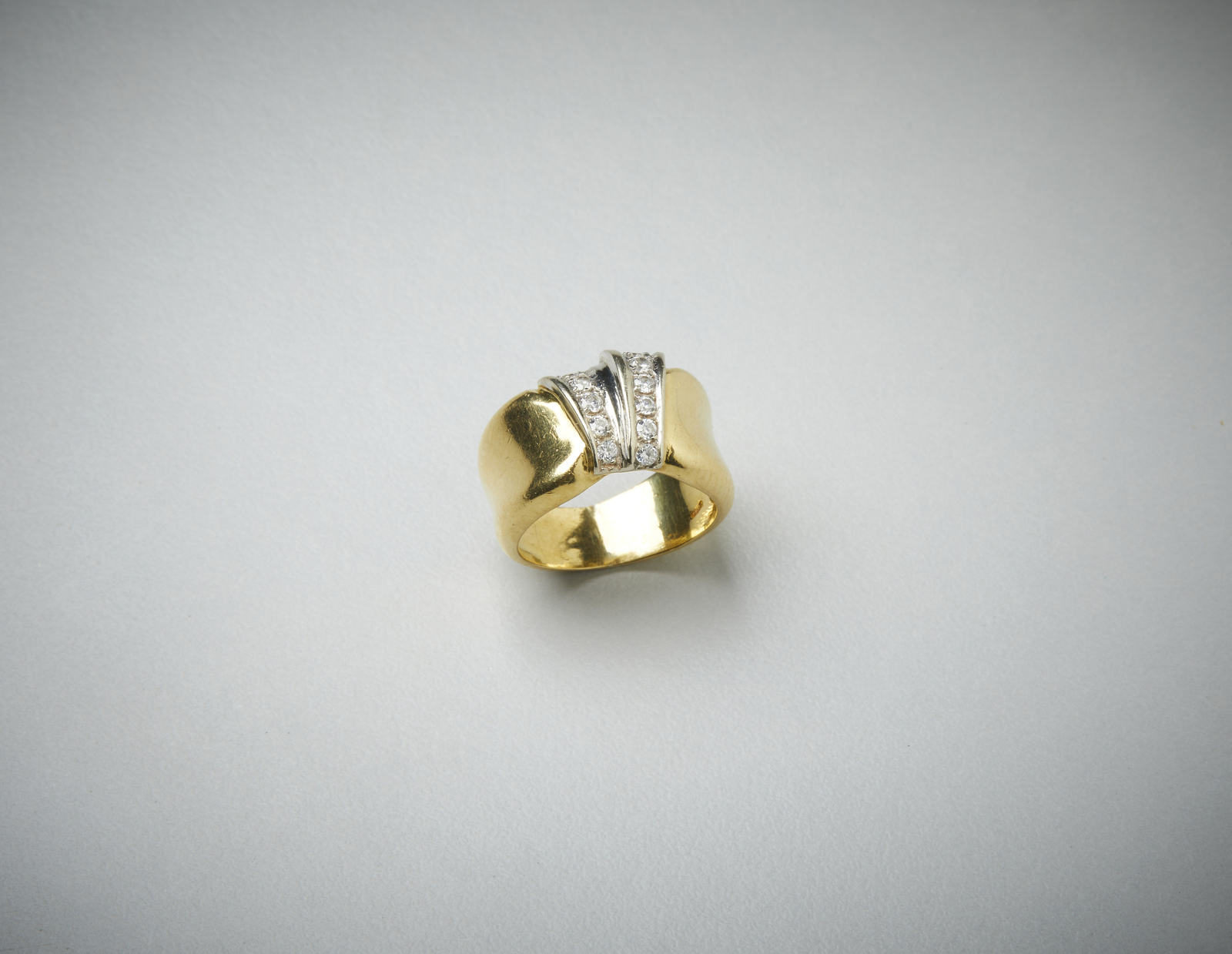 . Anello a fascia in oro 750/1000 con zirconi. . . . Peso: 7,90 grammi