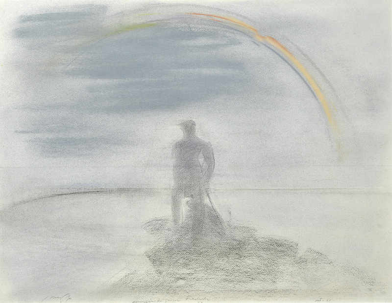 Piero Guccione (Scicli, 1935) PER FRIEDERICH, IL VIANDANTE, N.1, 1981 Pastelli su carta, cm. 49x64 Firma in basso a sinistra, data in basso a destra; sul verso: etichetta Il Gabbiano, Roma.