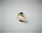 Lotto 75 | . - Anello in oro giallo 750/1000 a fascetta con zaffiro blu ovale di 0.70 ct ca. e diamanti bianchi laterali taglio a baguette di 0.75 ct totali circa. .